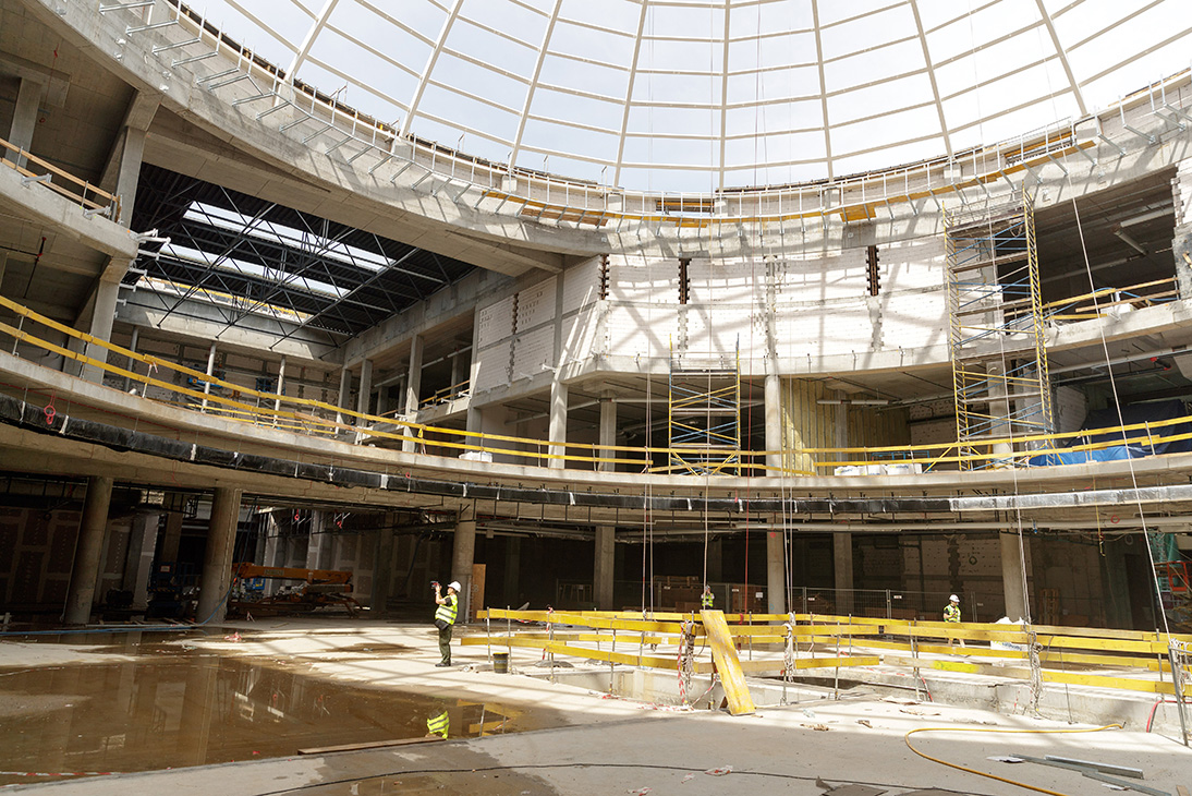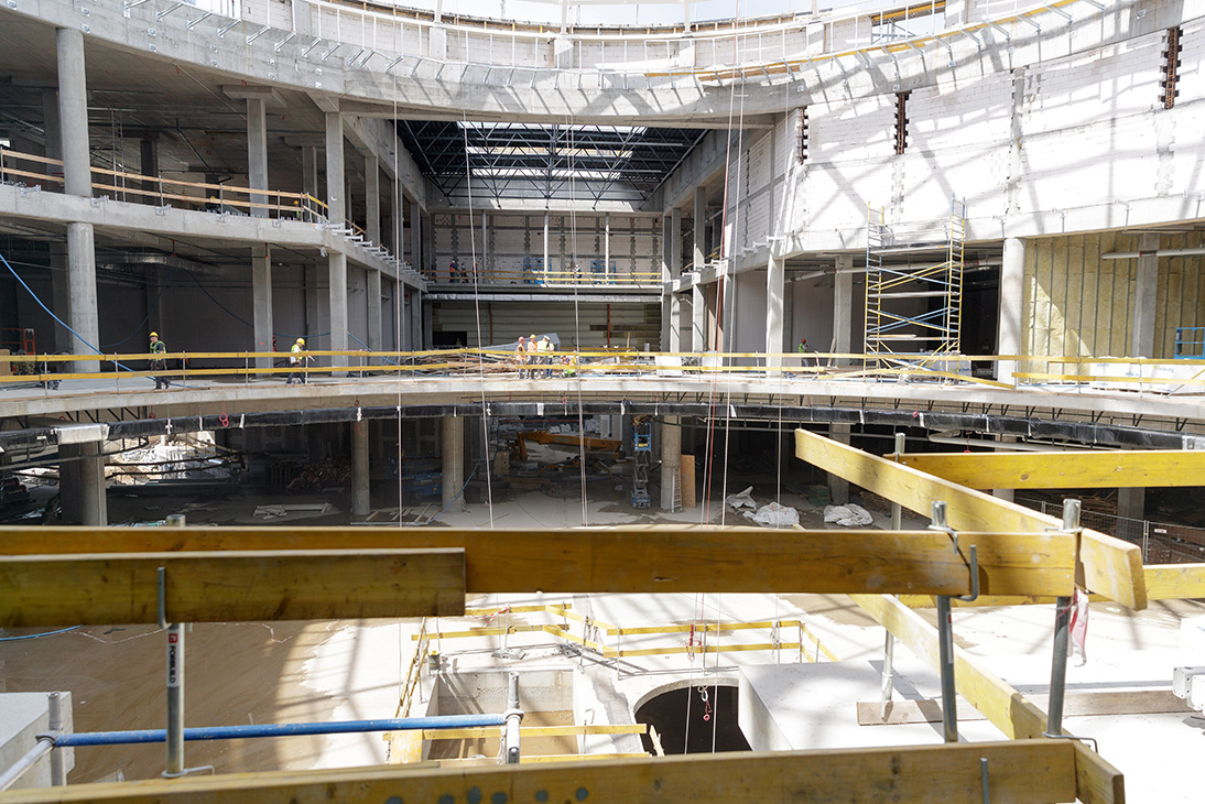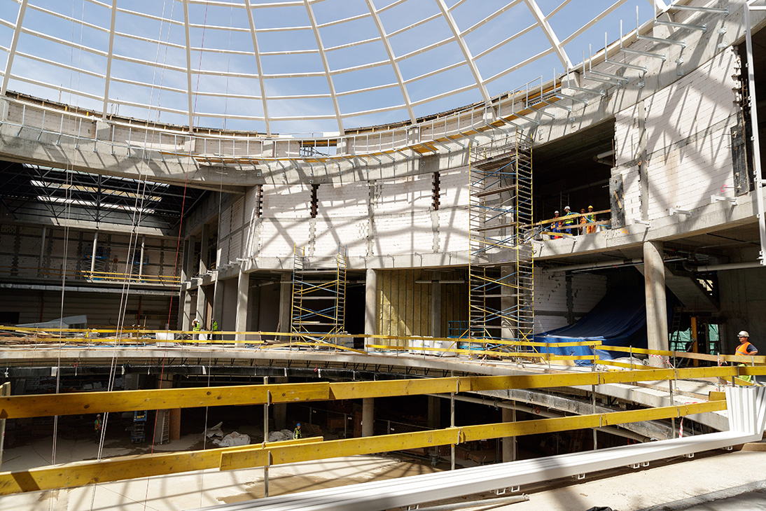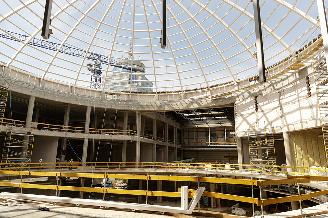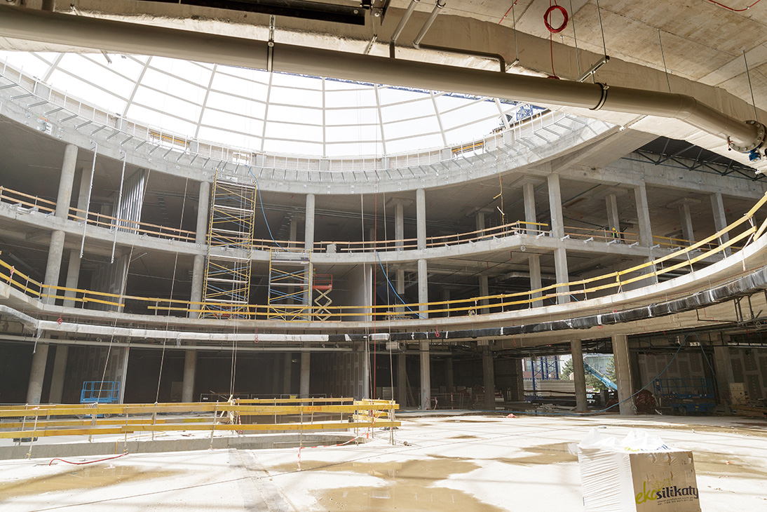 Przy rozbudowie Galaxy pracuje dwustu ludzi. W nowej części dominuje centralny plac przykryty ogromną kopułą. Od czerwca do lipca będzie na niej instalowane szkło. Atrium będzie podobne do istniejącego w starej części, zostanie tu przeniesiona scena i zorganizowany plac zabaw dla dzieci.