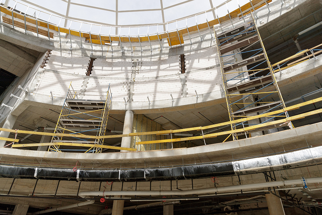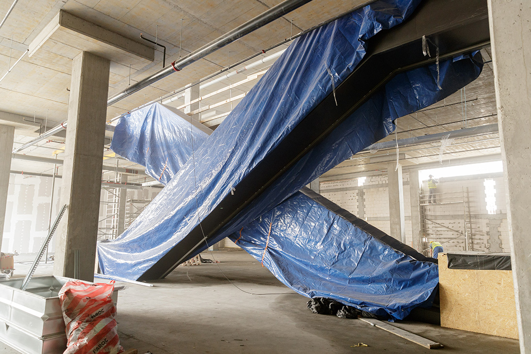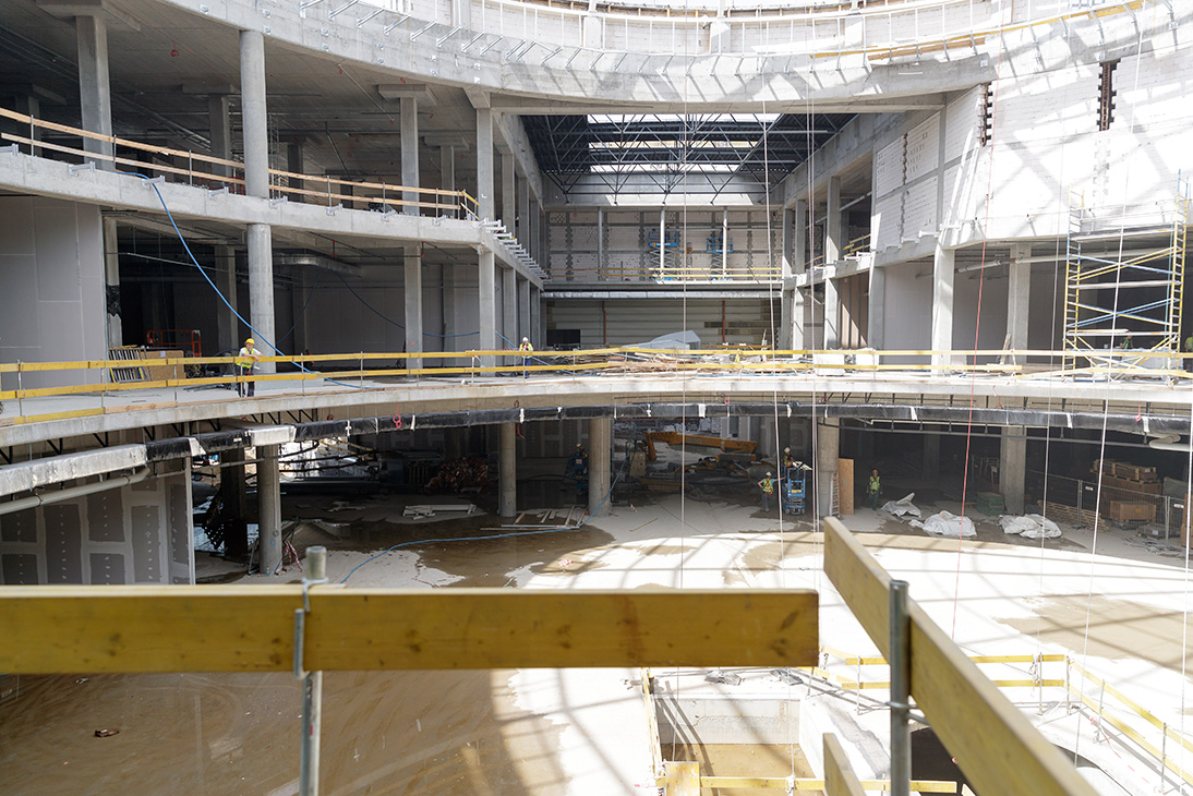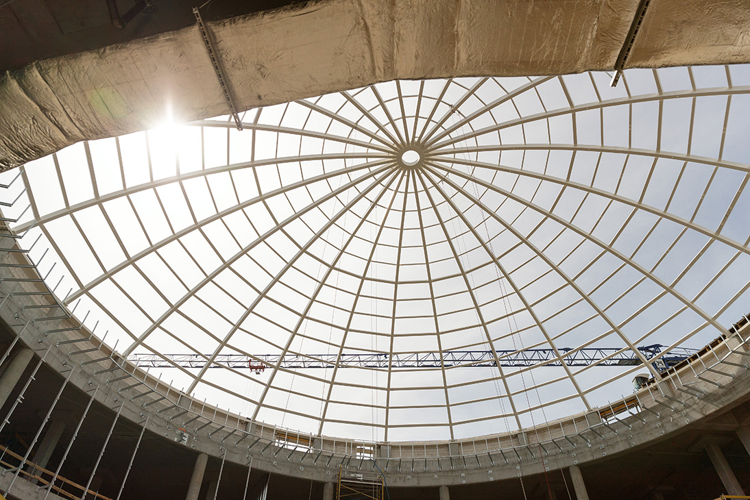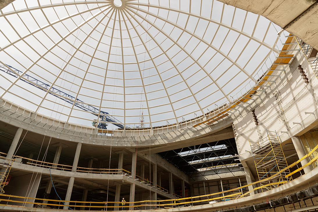 Przy rozbudowie Galaxy pracuje dwustu ludzi. W nowej części dominuje centralny plac przykryty ogromną kopułą. Od czerwca do lipca będzie na niej instalowane szkło. Atrium będzie podobne do istniejącego w starej części, zostanie tu przeniesiona scena i zorganizowany plac zabaw dla dzieci.