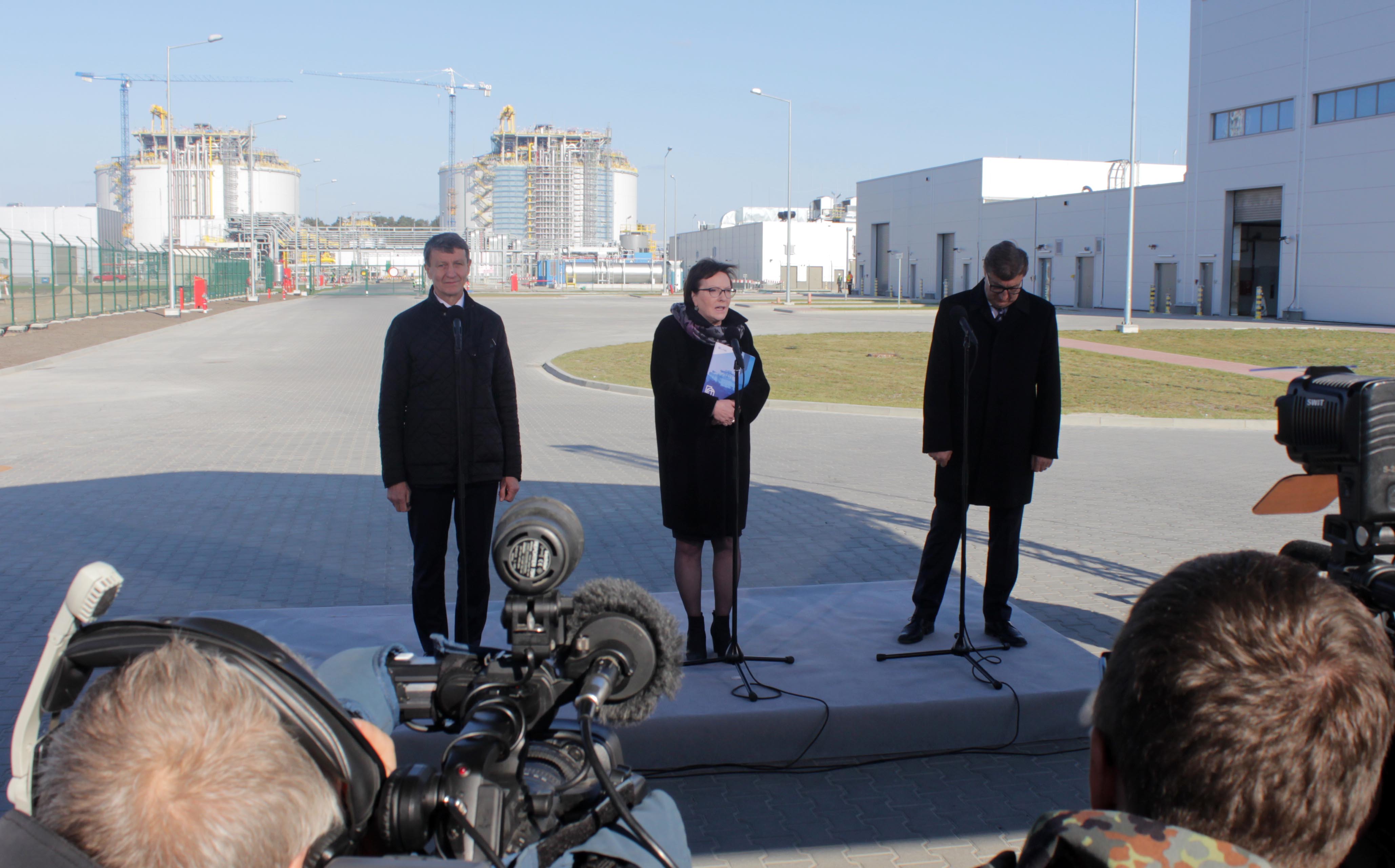 Na zdjęciu: Na niecałe dwa tygodnie przed wyborami prezes Rady Ministrów Ewa Kopacz ogłosiła koniec budowy gazoportu. Na pytanie, czy to oficjalne otwarcie uściśliła, że zakończył się etap budowy i teraz można przystąpić do następnego - rozruchu…