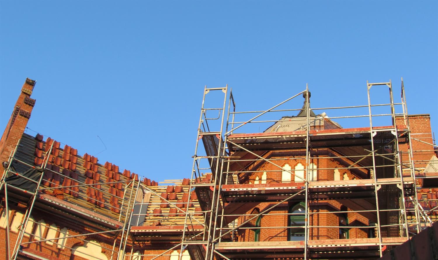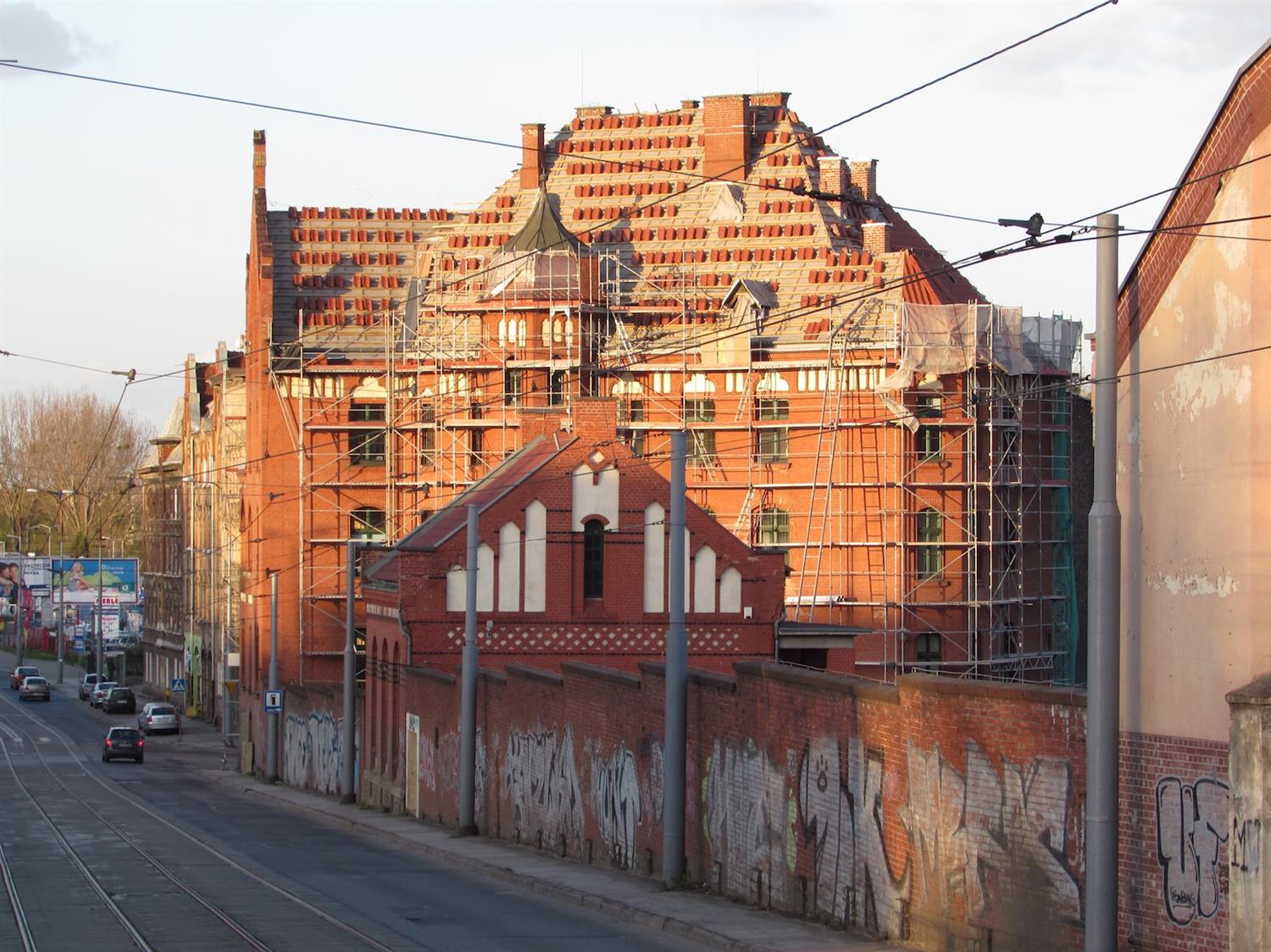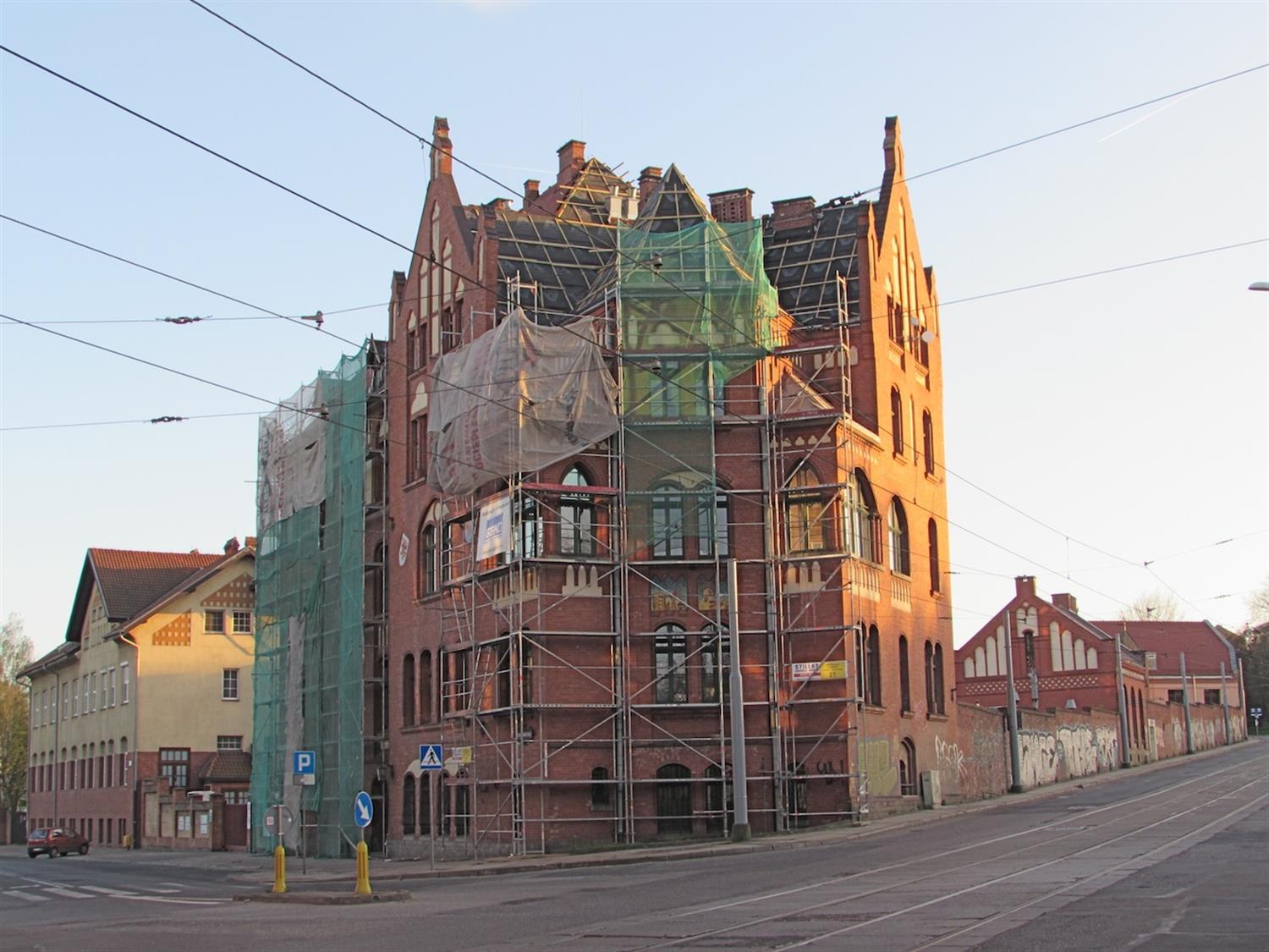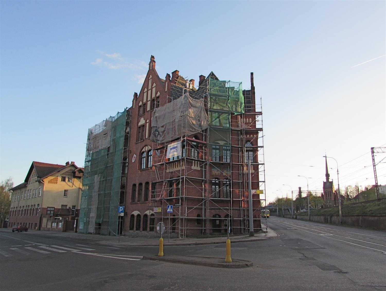 Trwa remont połączony z modernizacją budynku zakładu gazowniczego przy ul. Tama Pomorzańska 26 w Szczecinie.