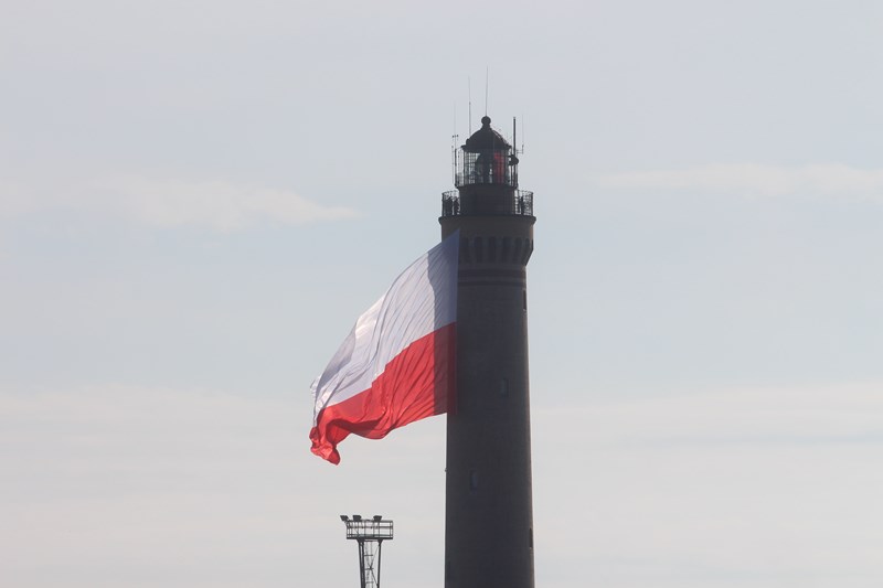 Inicjatywa Świnoujścia super. Widok niezwykły. Nie ma chyba lepszego "masztu" dla biało-czerwonej niż najwyższa i najpiękniejsza latarnia morska nad Bałtykiem.