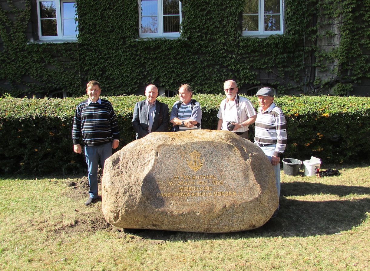 Przed głównym gmachem Akademii Morskiej w Szczecinie na Wałach Chrobrego położono w poniedziałek sześciotonowy głaz z napisem upamiętniającym Państwową Szkołę Morską, która w latach 1963-72 mieściła się w tym budynku. W sobotę (1 października) o godz. 10 nastąpi uroczyste odsłonięcie kamienia. Zaplanowano też spotkanie absolwentów PSM, zwłaszcza z pierwszego rocznika, którzy opuścili mury szkoły w 1966 roku, czyli 50 lat temu. Inicjatorem położenia pamiątkowego głazu jest kpt. ż.w. Włodzimierz Grycner (na zdjęciu - pierwszy z lewej). (ek)