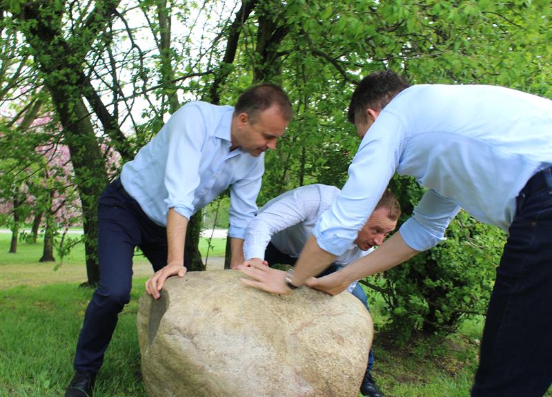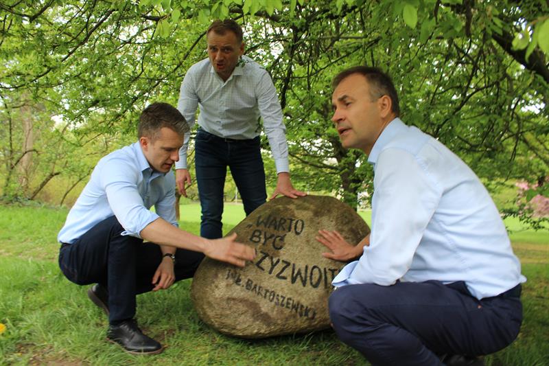 Głaz ze słowami Bartoszewskiego trafił na wybieg dla psów