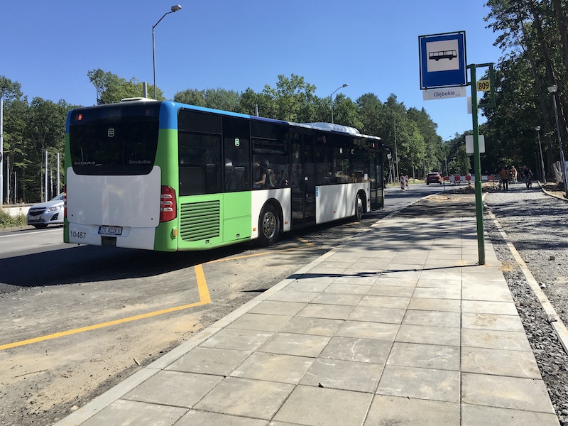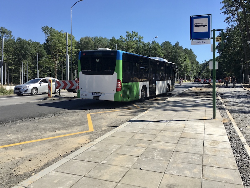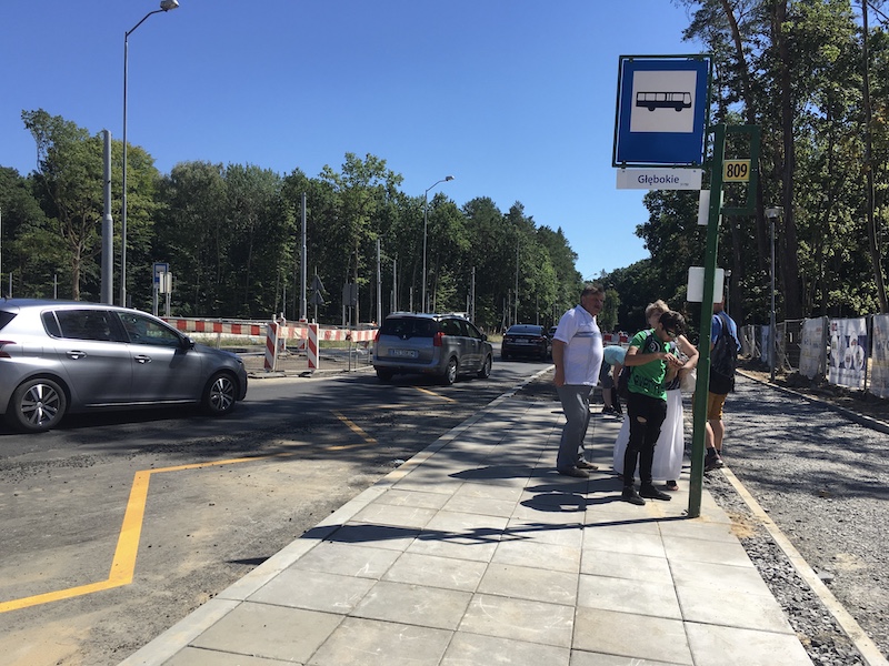 Autobus zastępczej linii 809 ma przystanek końcowy na Głębokim przy ul. Emila Zegadłowicza na górce między skrzyżowaniem z ulicami Majową i Kąpieliskową. Dowozi pasażerów do przystanku Rondo Olszewskiego w kierunku centrum i z niego też ich zabiera do Głębokiego. Drugi tymczasowy przystanek linii 809 dla osób, które chcą z Głębokiego jechać do centrum, usytuowany jest na pasie poszerzanej nitki jezdni od strony dawnego parkingu leśnego, gdzie teraz znajduje się zaplecze budowy.