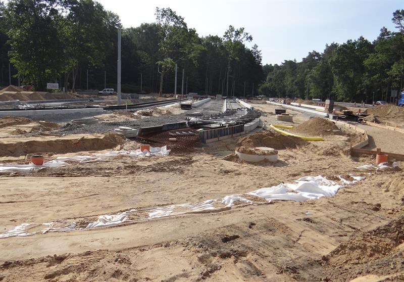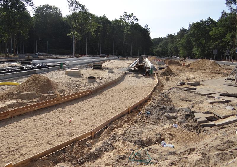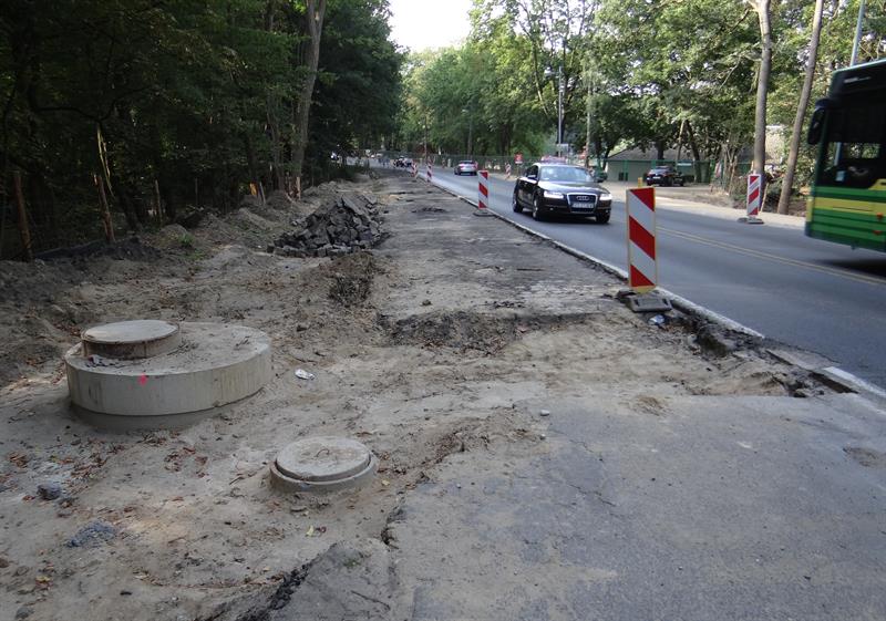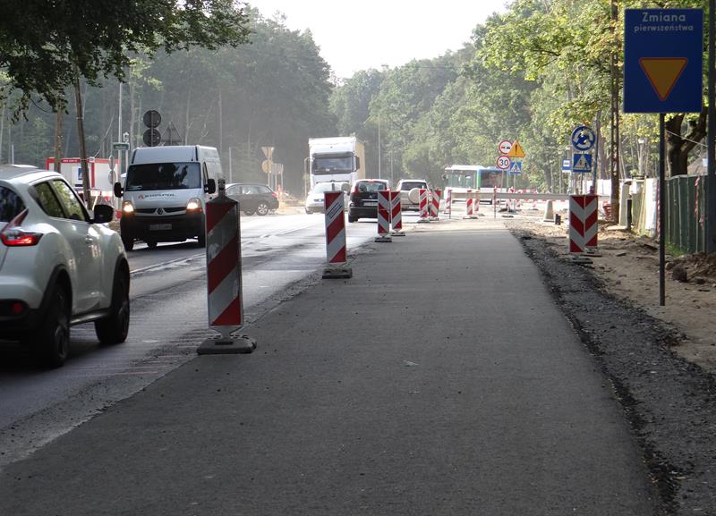 Drogowcy ze Strabagu, wykonawcy inwestycji, od kilku dni szykowali nowe tymczasowe przejazdy dla samochodów w obu kierunkach. Jeden z nich urządzony został po śladzie pobocza i części pasa starego już rozebranego fragmentu torowiska. Drugi bypass przygotowano na odcinku od wysokości skrzyżowania z ul. Kąpieliskową po stronie pobocza przyległego wzdłuż ogrodzenia kąpieliska Głębokie. Tymczasowa jezdnia była niezbędna w tym wąskim przesmyku z uwagi na trwające tam już prace przy zrywaniu miejscowo starej nawierzchni na dotychczasowym pasie jezdni ul. Emila Zegadłowicza oraz jej poszerzaniu od nieczynnego teraz przejścia dla pieszych przy skrzyżowaniu z ul. Miodową.