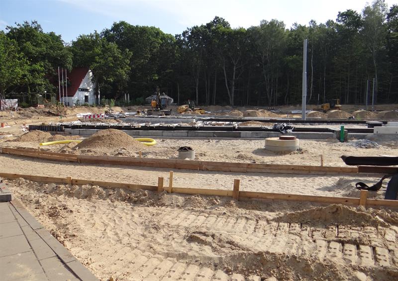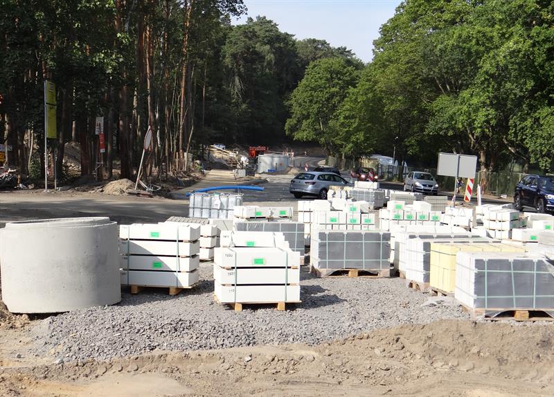 Na ul. Hieronima Kupczyka układane są kolejne warstwy nawierzchni drogowej oraz ścieżki rowerowej. Z tymi pracami drogowcy z ciężkim sprzętem dotarli już do rogatek miasta, w pobliżu Wołczkowa. Prace trwają również przy betonowaniu dna zbiornika retencyjnego, który powstaje w zagłębieniu wzmocnionym ściankami szczelnymi Larsena, przy leśnej, stromej skarpie naprzeciwko jeziora. Nieco dalej, na wysokości drugiego z leśnych parkingów, który służy teraz za miejsce składowania elementów uzbrojenia, kruszywa i piachu montowane są w wykopach kolejne odcinki kanalizacji. ©℗