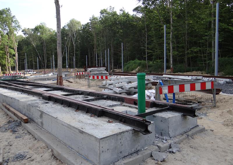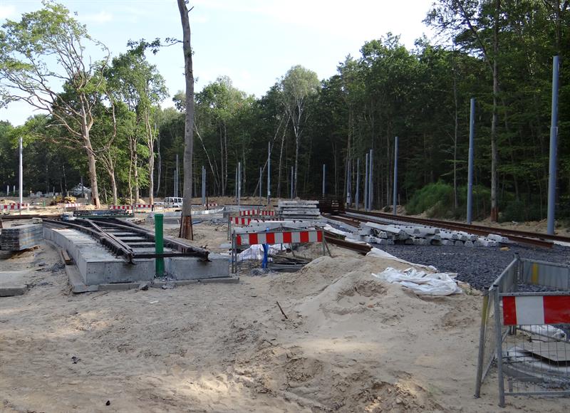 Na samej pętli nie ma już starego budynku dyspozytorsko-kasowego z poczekalnią od strony ul. Miodowej. Po parterowej konstrukcji zostały już tylko resztki złomu z rozbiórki. Plac został odgrodzony. Kontynuowane są tam rozbiórki pozostałej jeszcze starej infrastruktury. Trwa budowa kolejnych fragmentów torowiska tramwajowego. Przygotowywane jest m.in. zbrojenie i szalunki pod betonowanie płyty podtorowej.