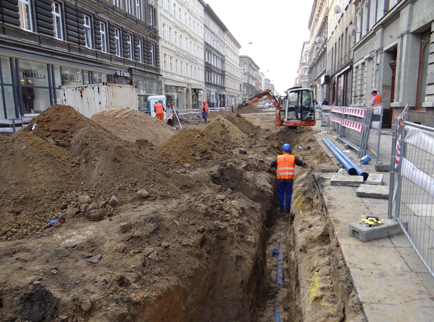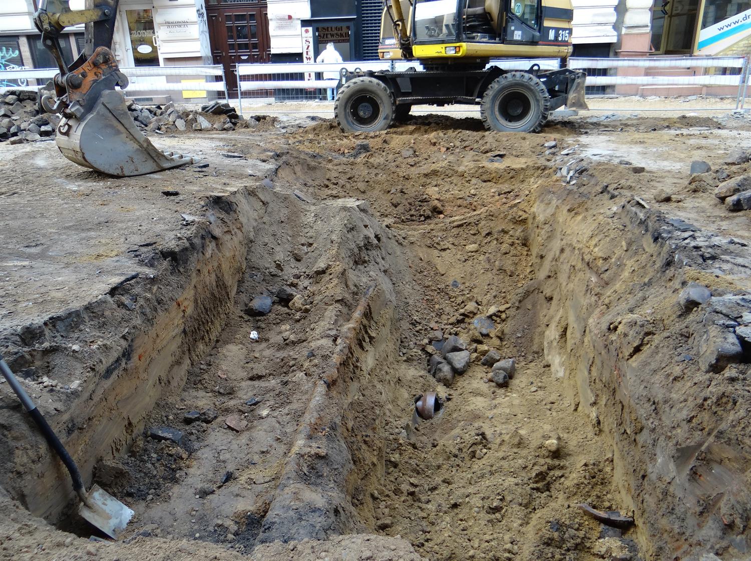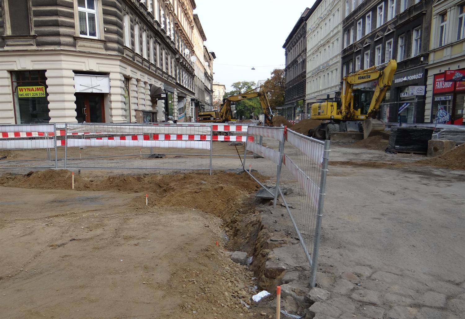 Na zamkniętym od trzech tygodni dla ruchu krótkim odcinku ul. księcia Bogusława X między pl. Zgody i ul. Andrzeja Małkowskiego w Szczecinie trwają roboty ziemne. Po rozbiórce starych chodników i skuciu zdewastowanej nawierzchni jezdni wykonywane są teraz wykopy pod nową infrastrukturę techniczną w tym rejonie. W ślepym zaułku przyległej ul. Andrzeja Małkowskiego (dochodzącym do budynku dawnego kina Kosmos) prace jeszcze się nie rozpoczęły. A skrzyżowanie obu tych ulic dla aut jadących od ul. Bolesława Krzywoustego w kierunku ul. bł. Królowej Jadwigi pozostaje na razie przejezdne.