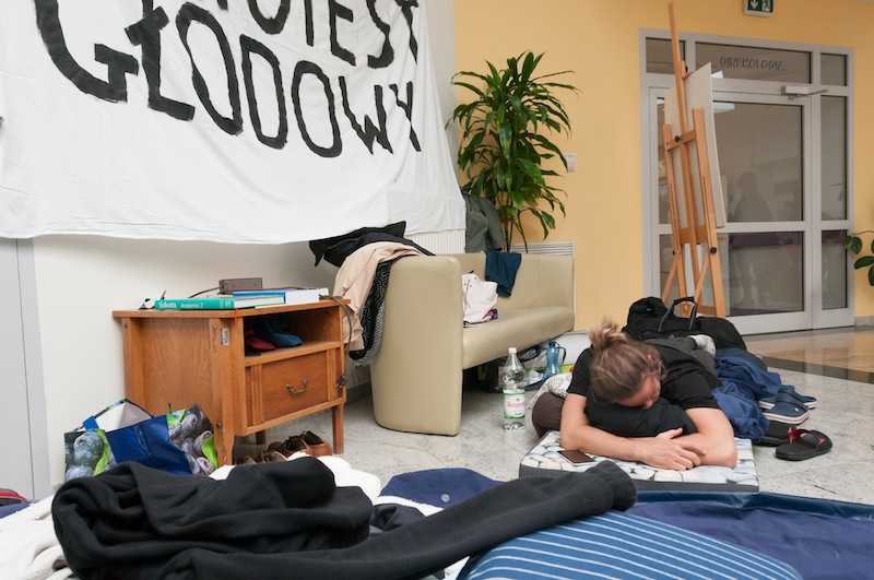 Protest lekarzy rezydentów przeciwko niedofinansowaniu służby zdrowia i niskim płacom rozpoczął się 2 października w Warszawie. Dołączyły kolejne miasta, od 17 października Szczecin. Stan głodujących w szpitalu "Zdroje" osób jest stabilny, są pod opieką lekarską i psychologiczną. Jeśli zdrowie kogoś z grupy nie pozwala już na uczestniczenie w akcji, jest wykluczany z tej formy protestu. Ale dołączają do niej kolejni. Wszyscy robią to wykorzystując w pracy urlopy wypoczynkowe.