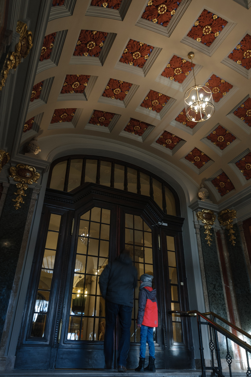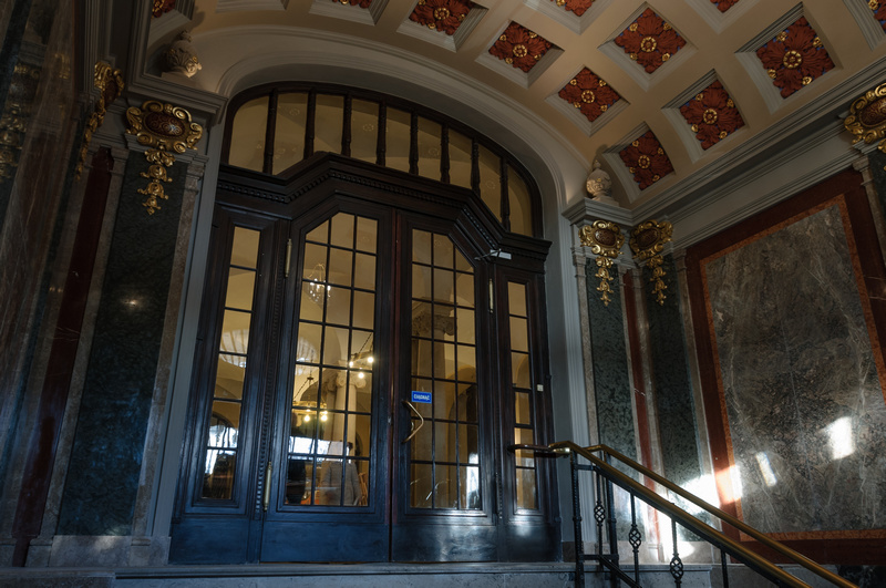 Podziwiać można odrestaurowaną główną sień wejściową, w której z dużą starannością przywrócono pierwotną, historyczną kolorystykę ścian i sklepienia. Oczyszczono oraz odnowiono sztukaterie i dekoracje. Naprawiono i oczyszczono cokoły z piaskowca, a także wykonano konserwację marmuru na ścianach, posadzce i schodach.