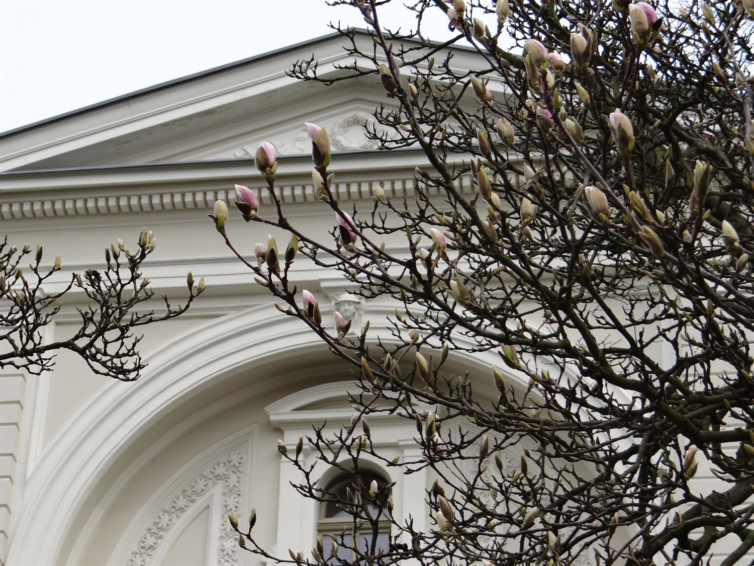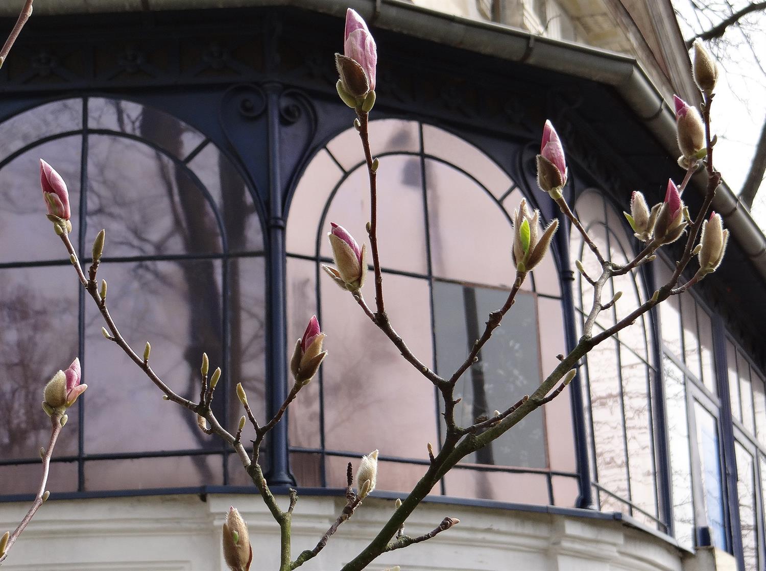 Wystarczyło ledwie parę dni ciepłej aury, a już pękają tysiące magnoliowych pąków. Piękne kwiaty na tle nie mniej interesujących architektonicznych detali zabytkowych willi Pogodna i Łękna. Warto to zobaczyć! (an) Fot. Mirosław WINCONEK