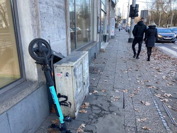 Czy to nie jest jakieś 200 metrów od Komendy Wojewódzkiej ? Przecież takie hulajnogi z okjna komendy widać doskonale ale Policja takimi pierdołami jak nieprawidłowo zaparkowane na chodnikach samochody czy hulajnogi się nie przejmuje
