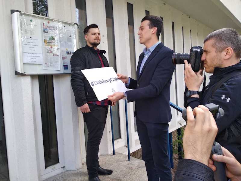 W czwartek rano przed siedziba szczecińskiego PiS-u doszło do małej konfrontacji, gdy przedstawiciel młodzieżówki Platformy Obywatelskiej Stanisław Knaup próbował powiesić na budynku kartkę z napisem "#DaliśmyCiała". To hasło nawiązywało do jednego z tweetów Joachima Brudzińskiego, ministra spraw wewnętrznych i administracji w rządzie PiS, który w ten sposób tłumaczył swoją nieobecność na wtorkowej konferencji prasowej w Szczecinie.