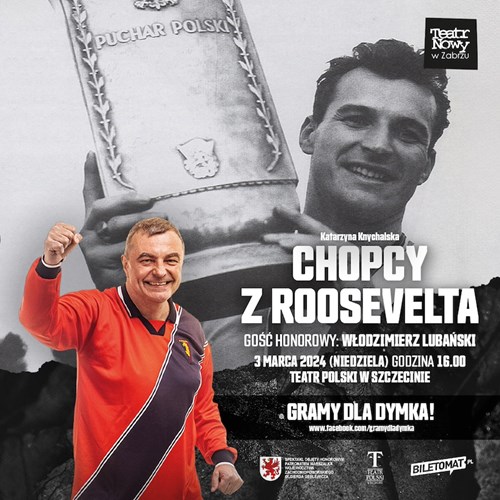 W niedzielę 3 marca o godz. 16, w Teatrze Polskim w Szczecinie, odbędzie się wyjątkowy spektakl „Chopcy z Roosevelta", przedstawiający lata świetności Górnika Zabrze (14-krotny mistrz Polski, 6-krotny zdobywca Pucharu Polski i finalista Pucharu Zdobywców Pucharów), a całkowity dochód z przedstawienia przeznaczony zostanie na wsparcie finansowe zmagającego się z ciężką chorobą byłego piłkarza, a później trenera Pogoni Szczecin - Roberta Dymkowskiego.