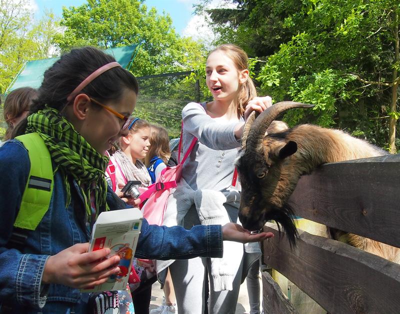Na zdjęciu: W zoo można kupić specjalną karmę dla zwierząt. Możliwość ich karmienia sprawia radość. Widać, że obu stronom.