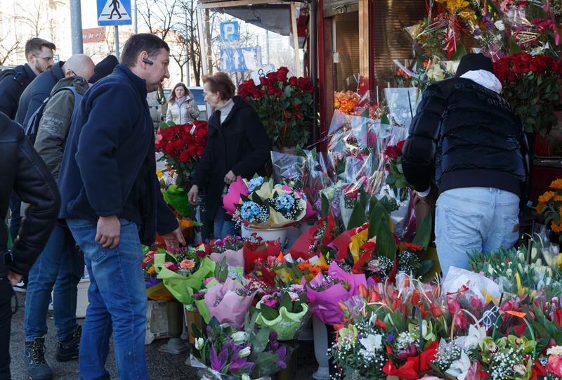 Tulipany, goździki, róże, słoneczniki sprzedają się dziś jak ... ciepłe bułeczki. Przy kwiaciarniach od rana duży ruch. Choć każdy dzień jest odpowiedni do obdarowania kobiet kwiatami, 8 marca przypomina o tym szczególnie. Na zdjęciu jedno z najbardziej obleganych dziś miejsc w Szczecinie - stragany z barwnymi bukietami przy pl. Szarych Szeregów.