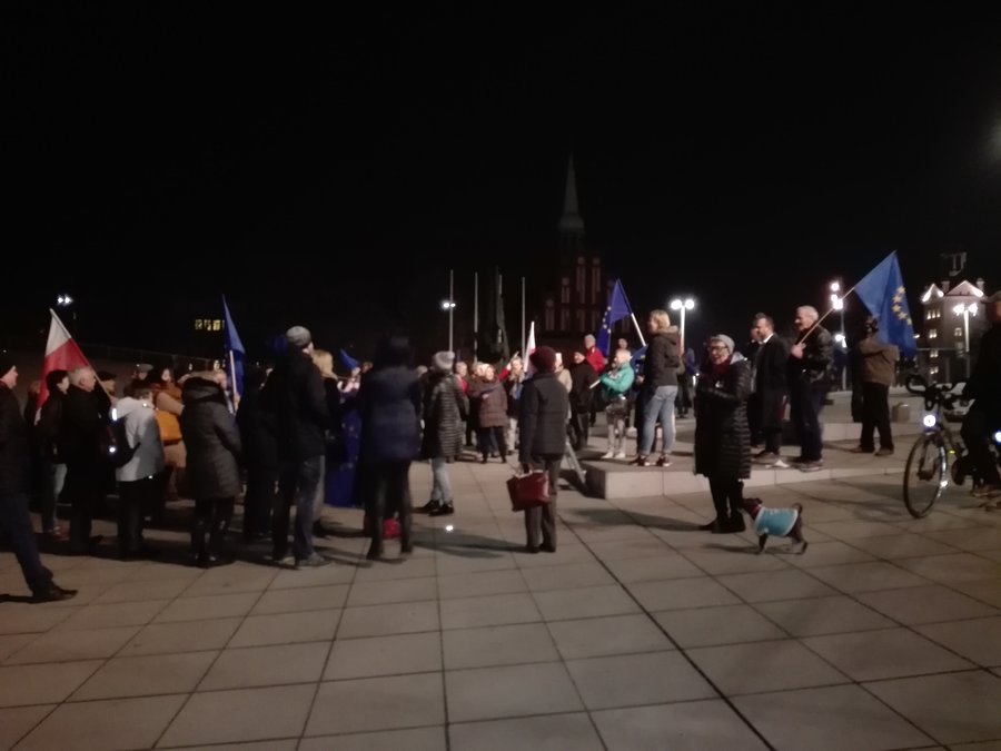 Cieszy mnie,że światli mieszkańcy Szczecina dali znak, iż nasze miasto jest częścią europejskiej wspólnoty. To nie jest ważne, czy na naszym Pl.Solidarności było osób 30 czy 100. Ważne, że jest grupa inicjatywna, za którą, w razie potrzeby , pójdą tysiące Szczecinian. a pójdą z pewnością.Gratuluję pomysłu i odwagi. Tak trzymać! Wynik 27 do 1. to wynik haniebny!Potrójny samobój Kaczo-Wyszłozwora-Waszcziczikowa wręcz nakazuje dymisję całego stada!