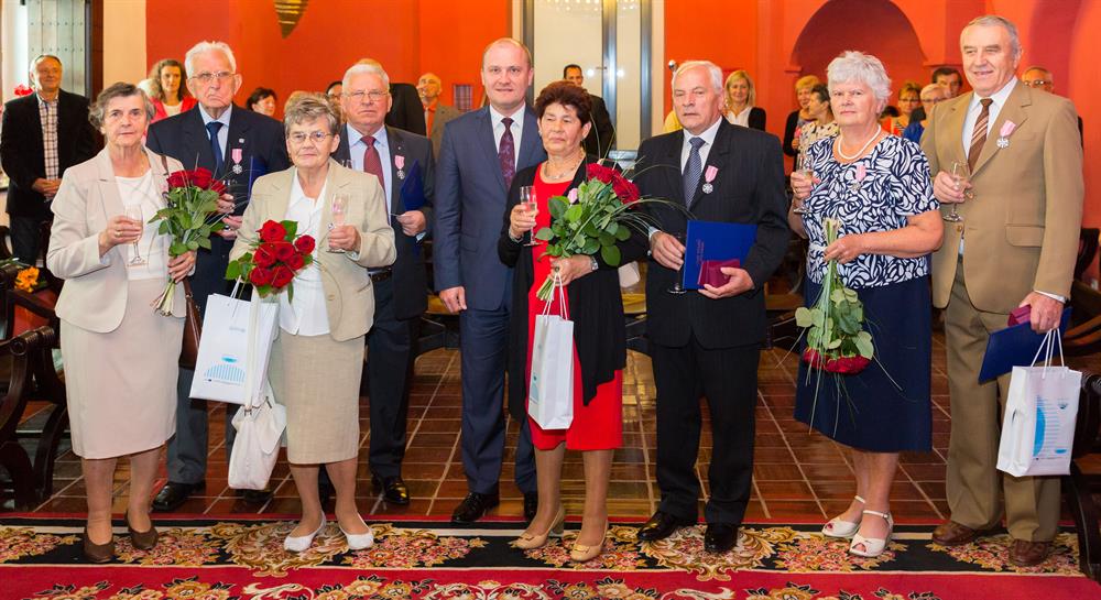 W poniedziałek w Urzędzie Stanu Cywilnego w Szczecinie kilkanaście par, które przeżyły ze sobą co najmniej 50 lat razem, zostało przez prezydenta Piotra Krzystka udekorowanych medalami za Długoletnie Pożycie Małżeńskie. Jubliatom serdecznie gratulujemy! W najbliższych wydaniach "Kuriera" będziemy publikowali zdjęcia wyróżnionych par.