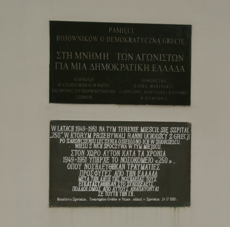 W lipcu 1949 roku, po ostatnich dniach wojny domowej w Grecji, Polska przyjęła ok. 12 tys. mieszkańców tego kraju. Przypłynęli oni statkami do Świnoujścia, a następnie dotarli do Dziwnowa, gdzie w tutejszych koszarach zorganizowano dla nich tajny szpital polowy nr 250. Był to wówczas pierwszy tak duży szpital chirurgii wojennej i rehabilitacji na terenie Polski. Rekonwalescenci osiedlali się potem m.in. w: Szczecinie, Policach, Gdyni czy na Dolnym Śląsku – głównie w Zgorzelcu.