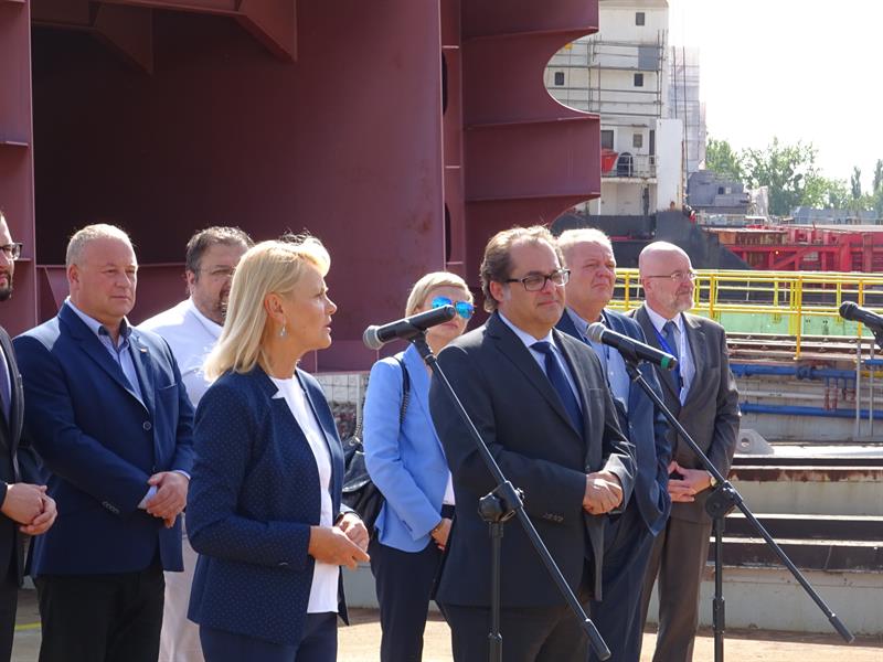 Głos zabrał również Paweł Brzezicki, zarządca komisaryczny Polskiej Żeglugi Morskiej oraz prezes Funduszu Rozwoju Spółek. Podkreślił, że dziś stocznie i PŻM mają wyniki dodatnie i "są gotowe do podjęcia wyzwania".