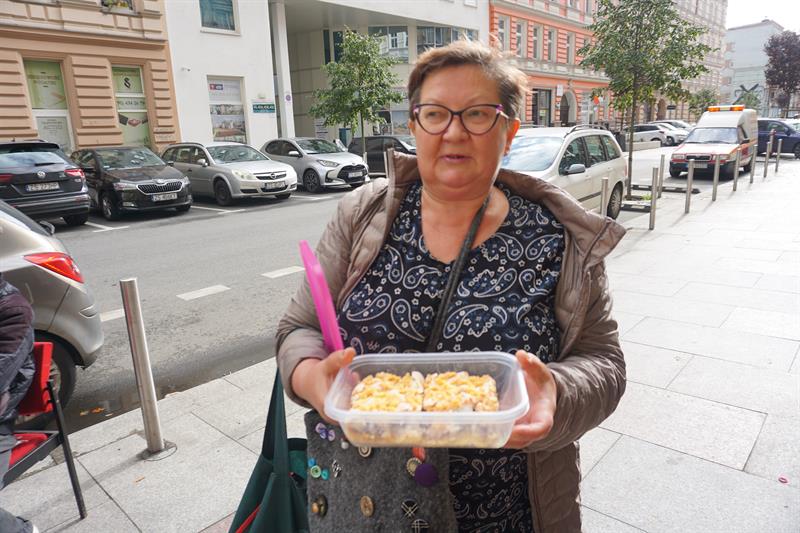 Z odległej dzielnicy Żelechowa przyjechała Janina. Przywiozła ze sobą ciasto, które sama upiekła: - Ciasto przygotowałam dzień wcześniej – mówiła. - Jest to „skubanek” zwany też „pleśniakiem”. Jabłecznik po prostu. Lubię piec i gotować, a na co dzień pracuję na ulicy Chopina przy produkcji „paprykarza szczecińskiego”.
