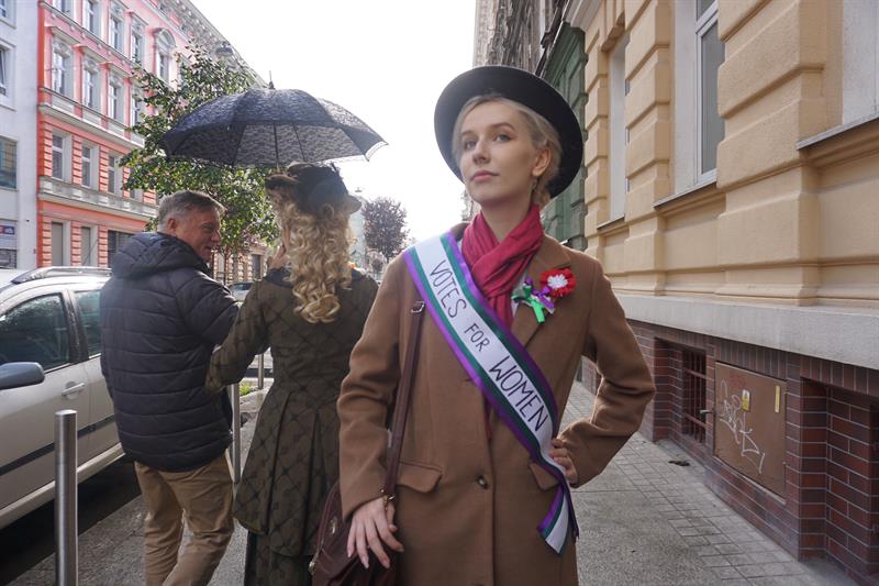 Uwagę zwracał również męski strój a la Doktor Dolittle oraz skromny strój sufrażystki z początków XX wieku. Zbuntowaną kobietą okazała się Zofia Skrobuk, studentka szczecińskiej Akademii Sztuki. Zosię kojarzyłem dotąd z barokowych kreacji, w których wyglądała jak porcelanowa figurka. Tym razem jej strój, mimo całej prostoty, nosił cechy buntu. Podkreślała go szarfa z napisem „Votes For Women”. - Denerwuje mnie, że tak mało kobiet nie jest zainteresowanych wyborami – mówiła Zofia Skrobuk. – Chociaż w ten sposób chcę przekonać do brania udziału w wyborach. ©℗
