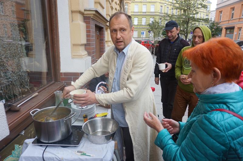 – Gotowanie zupy grochowej bez kiełbasy, to przewrotne działanie mające na celu zwrócenie uwagi na przedwyborcze obietnice polityków – tłumaczył Rafał Bajena, współorganizator akcji. – Uczestnicy happeningu chcą udowodnić, że da się robić pewne rzeczy bez „wkładki”.
