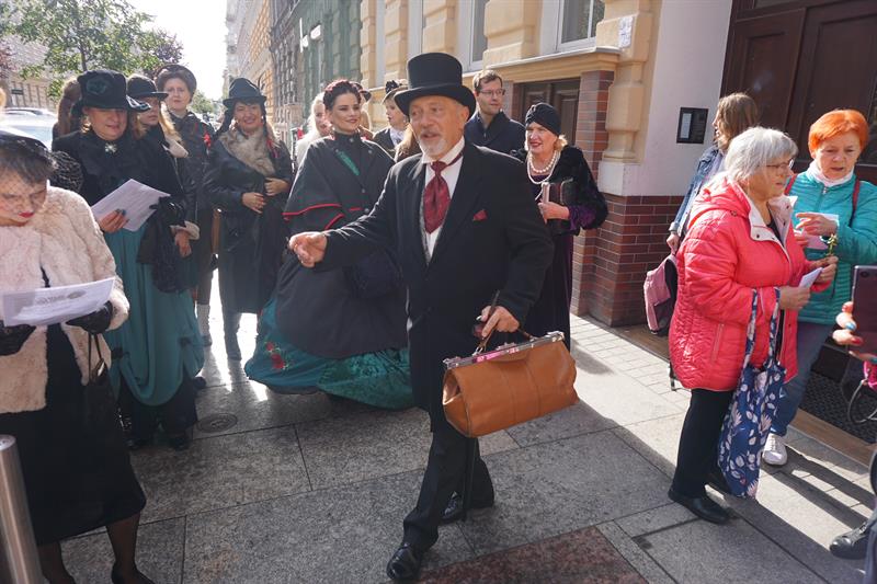 Do grupki gotujących grochówkę dołączyło około 50 uczestników Trzeciego Szczecińskiego Spaceru Retro Pań i Panów Szlakiem Ludzi z Pasją. Stroje uczestników Spaceru nawiązywały do różnych epok, postaci i wydarzeń. Na czele pochodu szła Olga Dąbkiewicz. Jest ona również znana pod pseudonimem Marvelous RetroLady. Olga jest członkiem ogólnopolskiej grupy Pin Up Poland oraz animatorką kultury i propagatorką stylu retro na Pomorzu Zachodnim.