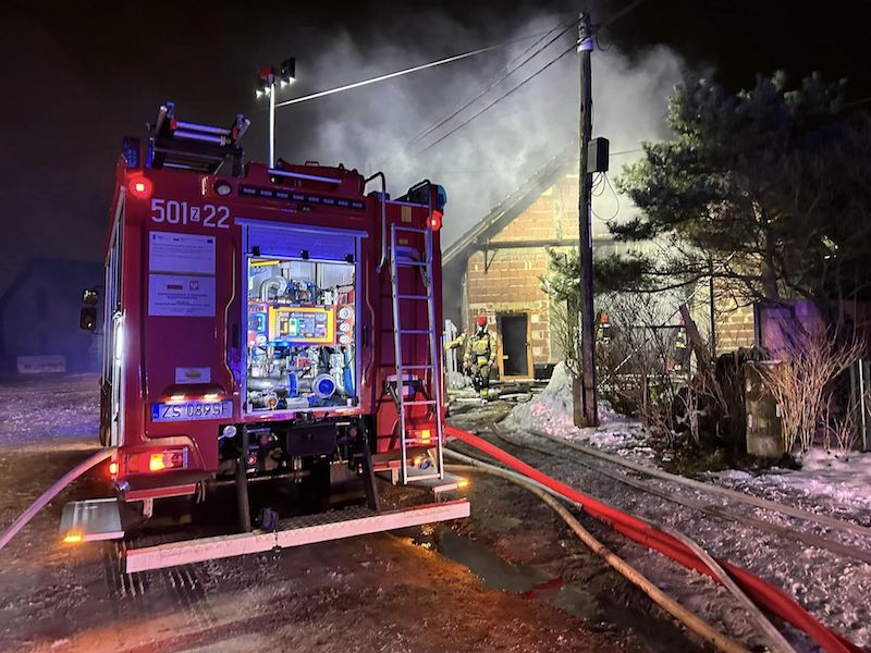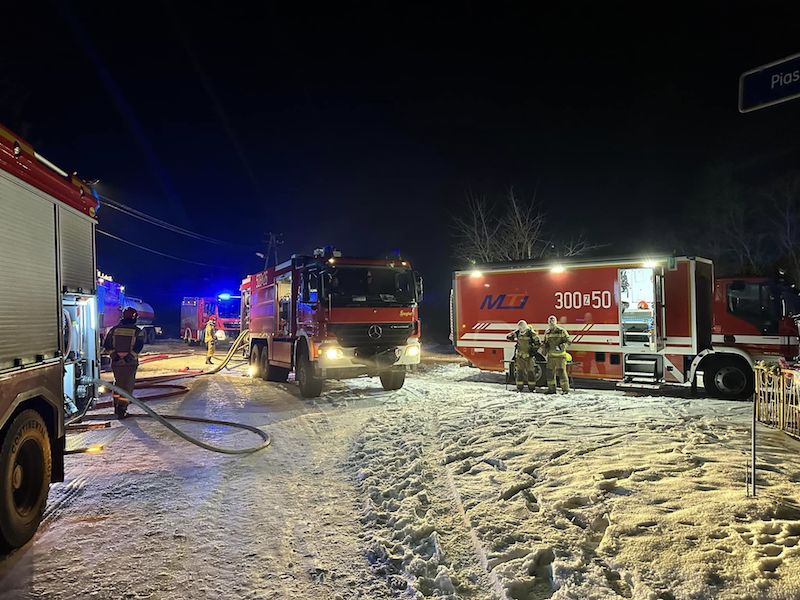 14 zastępów straży pożarnej walczyło w nocy z pożarem budynku w Trzeszczynie przy ul. Akacjowej. Ogień pojawił się w piątek wieczorem.