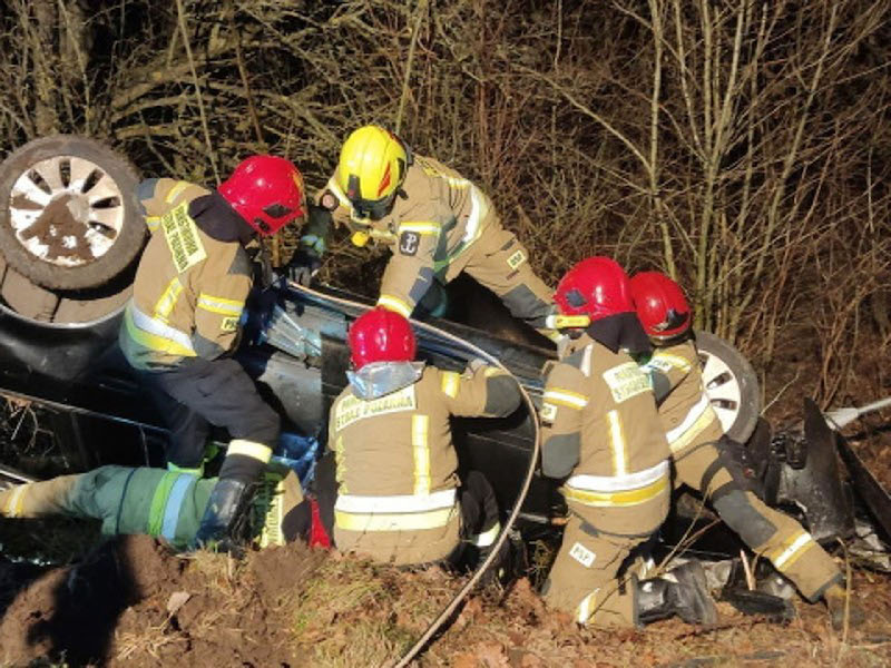 Na pomoc wezwano strażaków z OSP w Ustroniu Morskim. Gdy ratownicy przyjechali na miejsce okazało się, że aby wyciągnąć kierowcę pojazd trzeba rozciąć. Podczas używania sprzętu hydraulicznego doszło do zapłonu auta. Na szczęście pożar szybko ugaszono. Mężczyznę, który kierował audi, w stanie ciężkim przewieziono do kołobrzeskiego szpitala. W samochodzie nie było innych osób. Przyczynę wypadku bada policja. ©℗