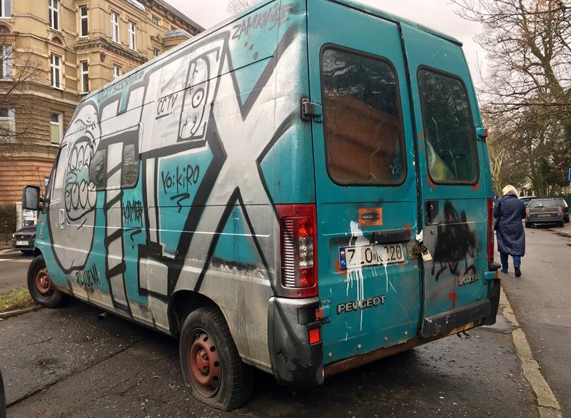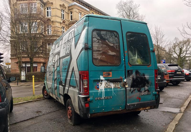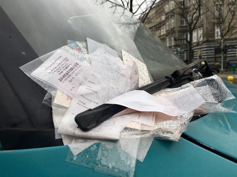Za jedną z wycieraczek peugeota modelu boxer w foliówkach zatkniętych jest przynajmniej już kilkanaście zawiadomień, jakie zostawili tu inspektorzy SPP. Z identyfikacją, czyja to zawalidroga, służby porządkowe nie powinny mieć zatem najmniejszego problemu, bo pojazd ma tablice rejestracyjne. A jednak. Ten zdezelowany furgon jest – jak widać – dotąd nie do ruszenia.