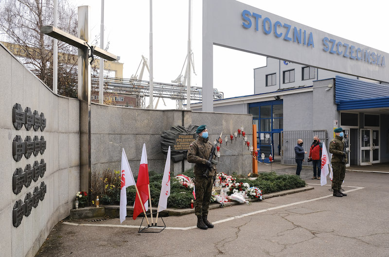 Ze względu na pandemię koronawirusa pięćdziesiątą rocznicę wydarzeń grudnia 1970 roku w Szczecinie musieliśmy uczcić w kameralny sposób. Delegacja złożona m.in. z przedstawicieli "Solidarności" złożyła kwiaty przed Stocznią Szczecińską, pod muralem przypominającym o robotniczej rewolcie. Grudzień '70 był kluczowym wydarzeniem dla formowania się tożsamości ludzi, którzy zamieszkali po wojnie w Szczecinie i tworzyli jego polską historię. O powszechnym strajku, który wybuchł pięćdziesiąt lat temu w Szczecinie, dr Paweł Skubisz, dyrektor szczecińskiego oddziału Instytutu Pamięci Narodowej, mówił tak: