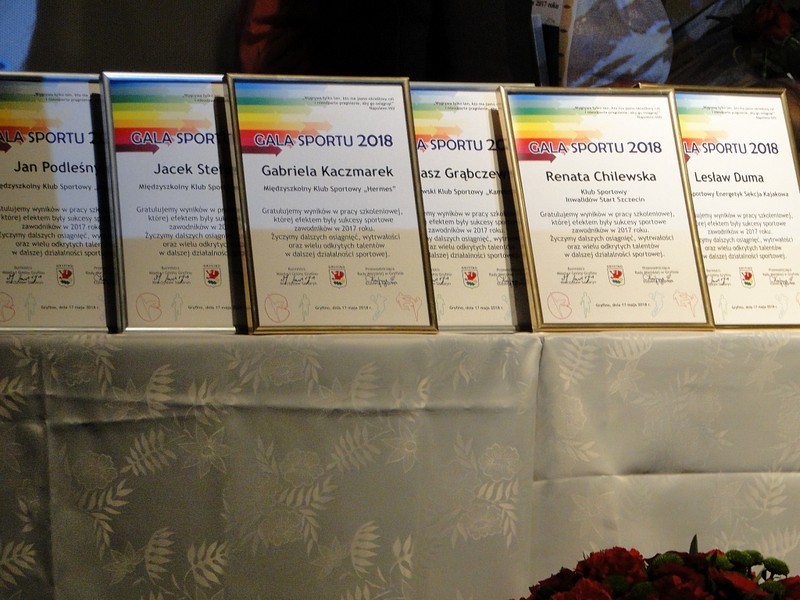 Podczas Gali Sportu, jaka odbyła się w czwartek 17 maja w Gryfińskim Domu Kultury, burmistrz Mieczysław Sawaryn uhonorował gryfińskich sportowców, którzy w ubiegłym roku osiągnęli wysokie wyniki we współzawodnictwie międzynarodowym lub krajowym. Nagrody pieniężne w wysokości od 250 zł do 4 tys. zł (zróżnicowane w zależności od zajętego miejsca i rangi zawodów) otrzymało 69 zawodniczek i zawodników. Docenieni zostali również ich trenerzy. Ponadto, poza nagrodami pieniężnymi, wyróżniono kluby i zawodników za promocję gryfińskiej gminy w czasie sportowych rozgrywek w kraju i poza jego granicami.