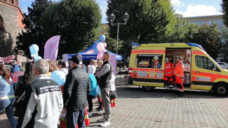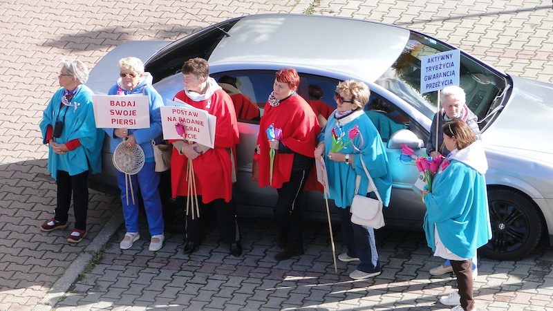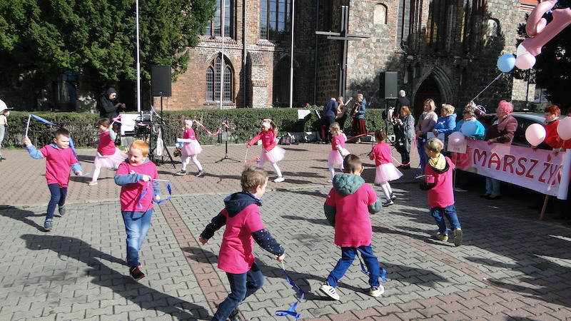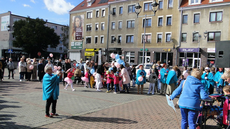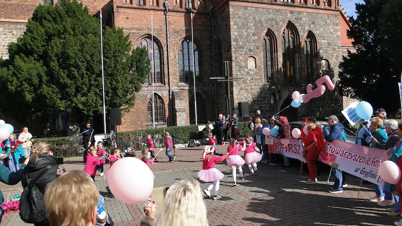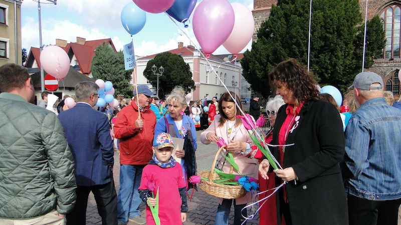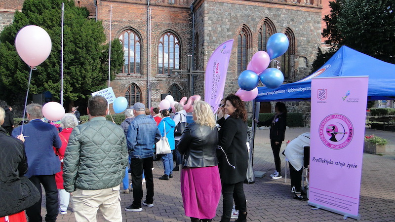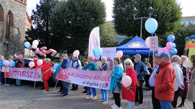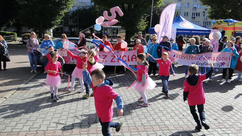 Gryfińskie Stowarzyszenie Amazonek „Ewa”, obchodzące w tym roku jubileusz 15-lecia, po raz kolejny przygotowało wydarzenie, którego celem jest propagowanie akcji informacyjnej dotyczącej badań profilaktycznych związanych z chorobami nowotworowymi – rakiem piersi i rakiem prostaty. Tradycyjny Marsz Życia „Różowej Wstążki i Niebieskiej Wstążki” przeszedł dziś (sobota 28 bm.) ulicami Gryfina. Z powodu zagrożenia powodziowego impreza nie mogła odbyć się na nabrzeżu, jej finał zorganizowano na placu Barnima. Tu odbyły się towarzyszące wydarzeniu artystyczne występy, można było także skorzystać z oferty stoisk profilaktycznych. Z kolei w gryfińskim Szpitalu Powiatowym chętni mogli bezpłatnie wykonać USG jąder i badania antygenu PSA (działanie finansowane z budżetu gryfińskiej gminy). Uczestnicy imprezy zachęcali do profilaktyki – im szybciej choroba zostanie zdiagnozowana, tym większe są szanse na wyleczenie.