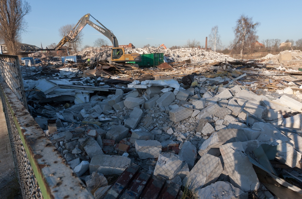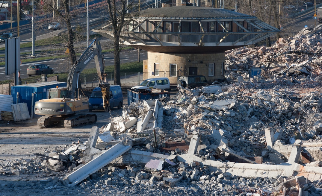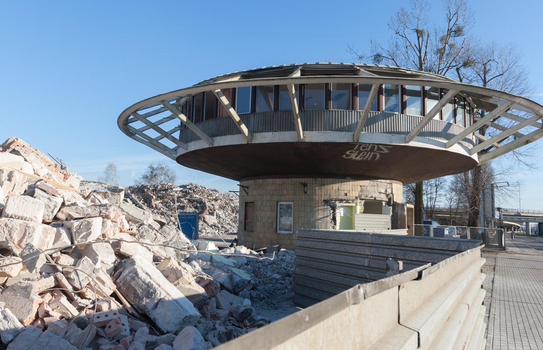 W grudniu minionego roku zaczęła się - zapowiadana od dawna - rozbiórka opustoszałych zabudowań. Nad gruzowiskiem wyrasta już tylko pięćdziesięcioletni (powstał w latach 1964-1966) „grzybek", w którym kiedyś był sklep i biura Przedsiębiorstwa Handlu Zagranicznego Baltona. Żelbetowa rotunda bowiem ocaleje. Po powstaniu centrum biznesu ma być w niej punkt obsługi klienta i centrum monitoringu.