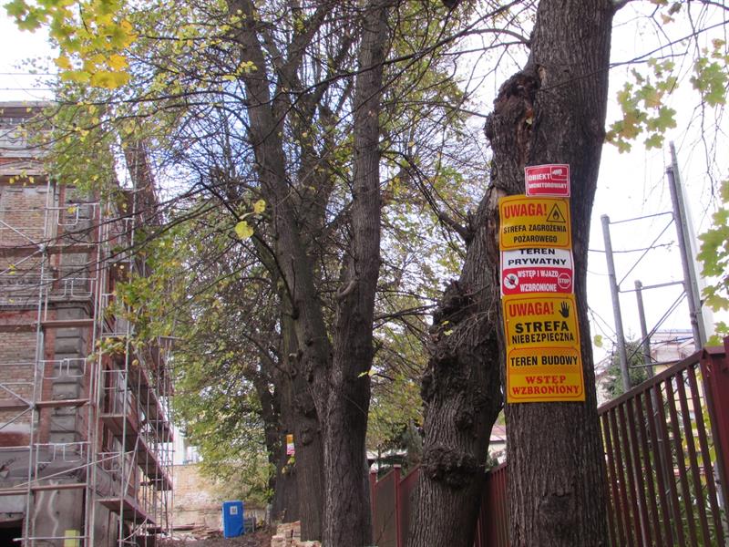 Nasza Czytelniczka alarmuje, że do drzew na posesji przy ul. Juliusza Słowackiego 3 w Szczecinie przybite są gwoździami różne tabliczki – ostrzegawcze i informacyjne – dotyczące prac budowlanych prowadzonych w zabytkowej willi.