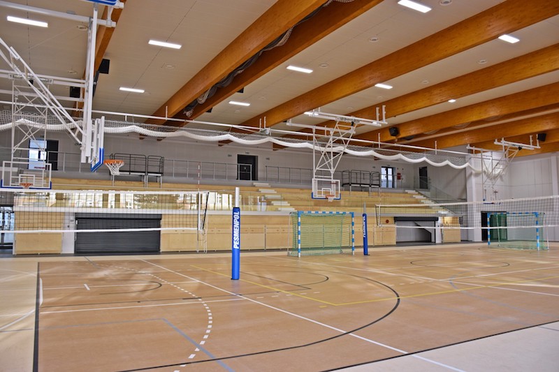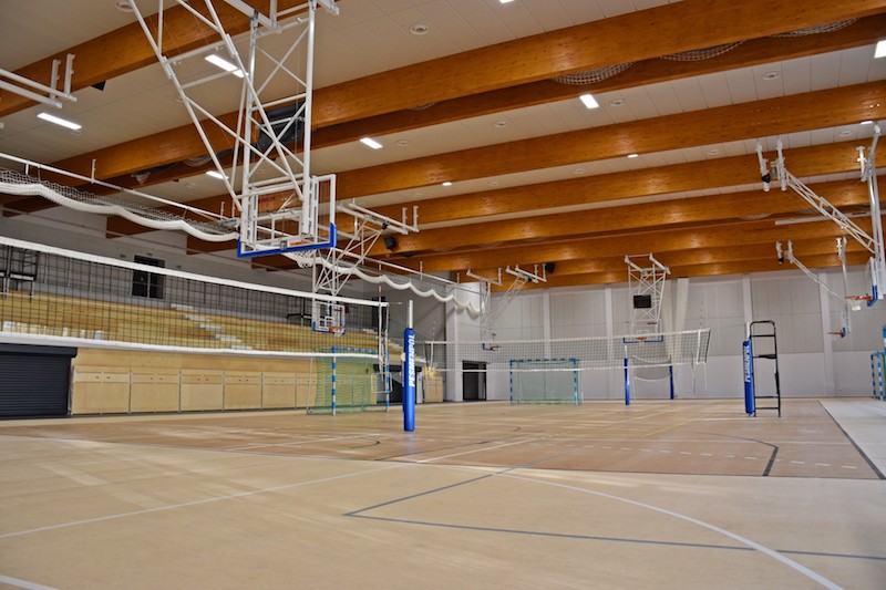 Główna sala składa się z wielofunkcyjnego boiska do koszykówki, siatkówki i piłki ręcznej. W zależności od potrzeb, salę można podzielić także na trzy mniejsze boiska. Śledzenie rozgrywek ułatwia duża tablica wyników oraz system nagłaśniający.