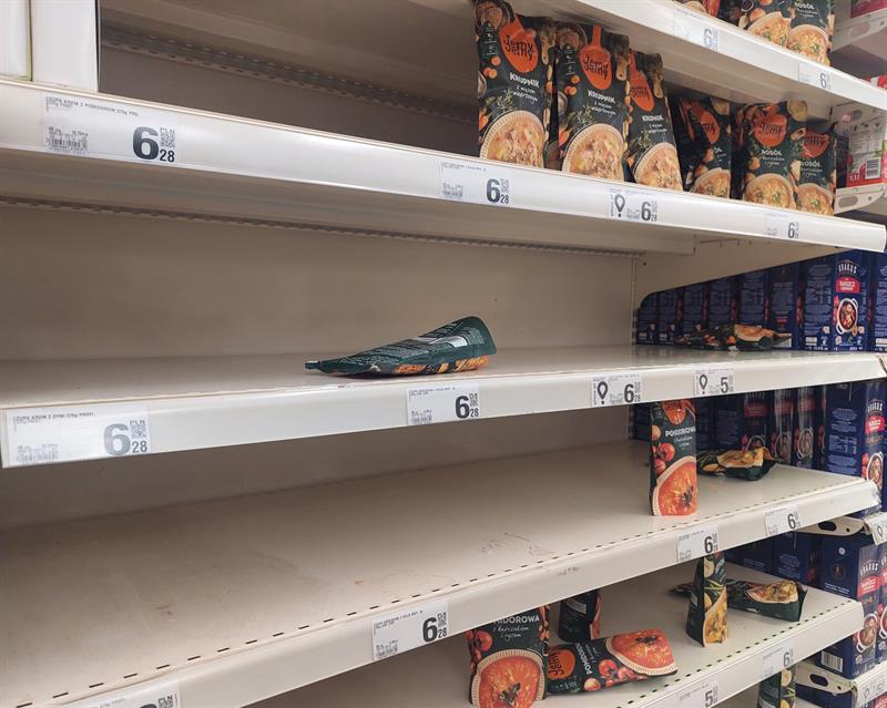 W szczecińskich sklepach i marketach już widać, które towary trafią do osób najbardziej poszkodowanych powodzią. W markecie Auchan w Centrum Handlowym Galaxy pełne są półki z wodą, ale już te z błyskawicznymi zupami świecą pustkami. Podobnie oblegany jest dział z artykułami drogeryjnymi – po większości podpasek nie ma już śladu, a regały z papierem kuchennym i toaletowym także zaczynają pustoszeć.