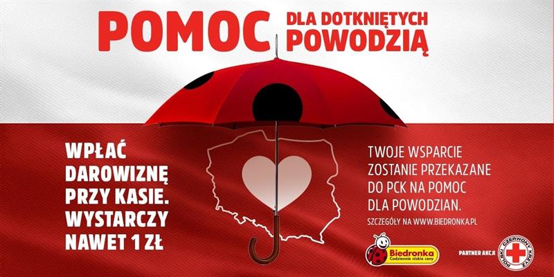 Od wtorku, 17 września, klienci Biedronki mogą się zaangażować w akcję pomocową dla powodzian w trakcie codziennych zakupów. Ta sieć handlowa uruchomiła zbiórkę przy kasach, z której środki w całości zostaną przekazane do Polskiego Czerwonego Krzyża. Uzbierane pieniądze zostaną przeznaczone na wsparcie osób poszkodowanych przez powódź oraz zakup sprzętu ratunkowego i pomocowego.