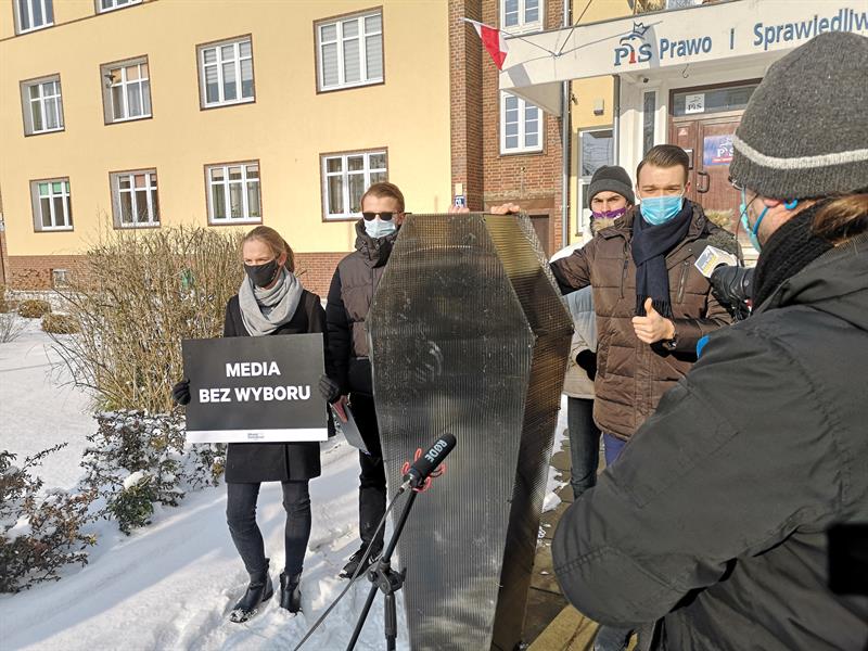 Happening Młodych Demokratów. Urządzili „pogrzeb wolnych mediów”
