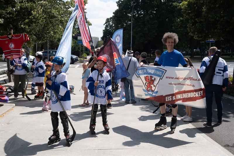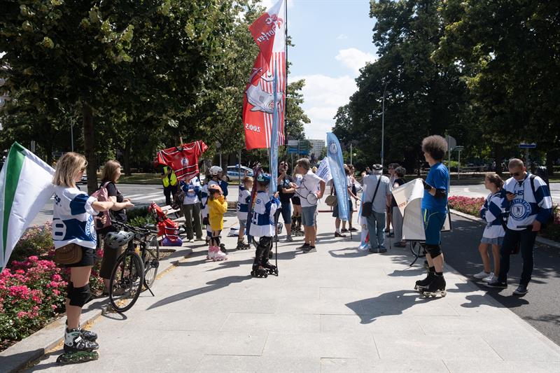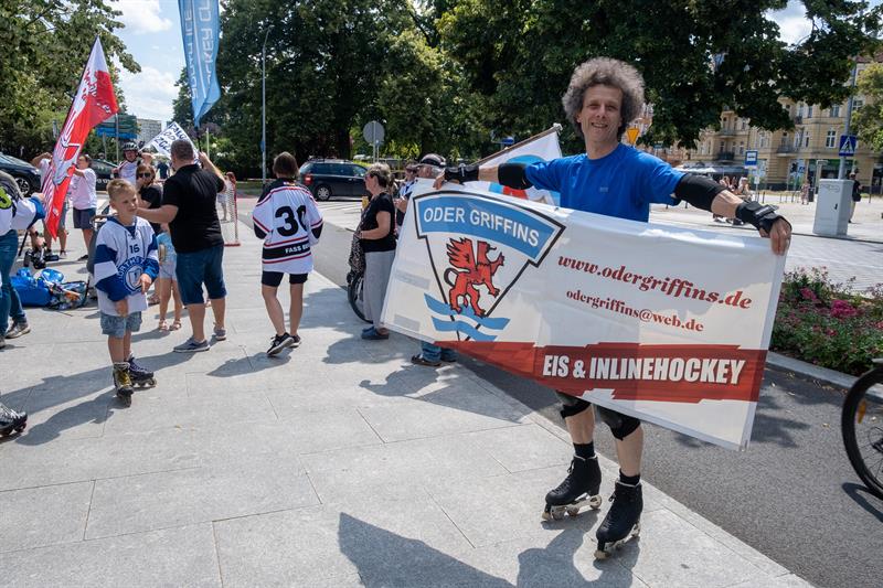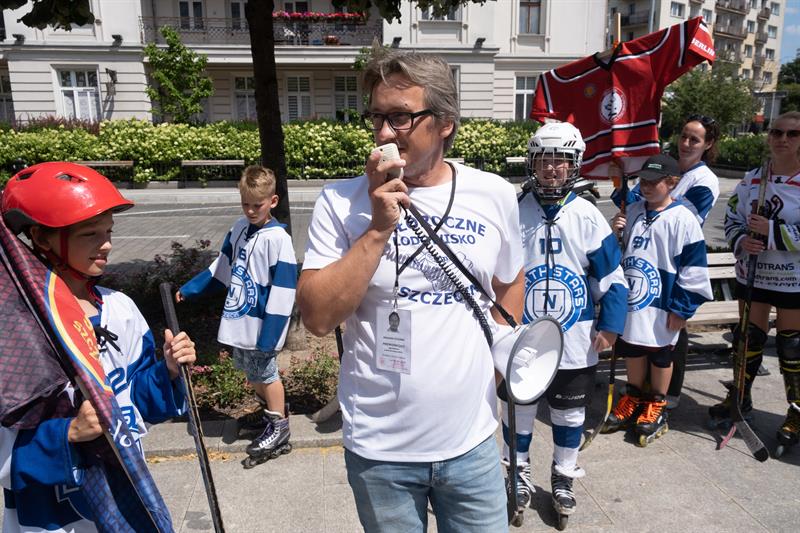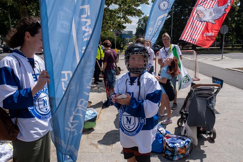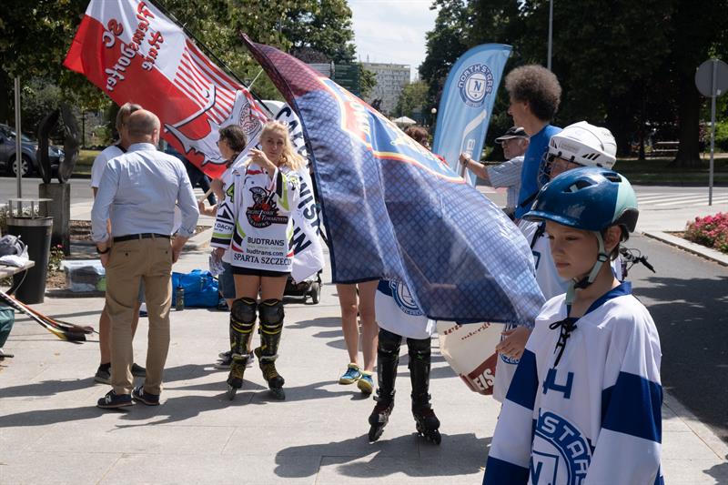 Kilkanaście osób, w tym hokeiści, łyżwiarze i rolkarze, wzięli udział w pochodzie, aby wyrazić swoje poparcie dla budowy całorocznego lodowiska. Na koniec wręczyli petycję Prezydentowi Szczecina.