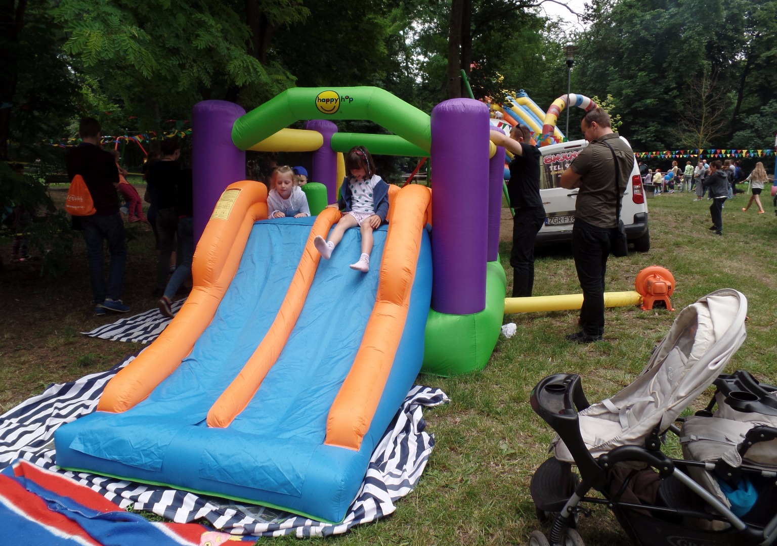 Dmuchane zamki, jazda kucykiem, strzelanie z łuku, lot "tyrolką", a do tego wyścigi "łodzi" i biegi w workach. To ledwie wycinek z morza atrakcji - dla wszystkich chętnych i darmo (!) - jakie działy się w szczecińskim parku Chopina przez jeden dzień rodzinnego festynu na powitanie lata.