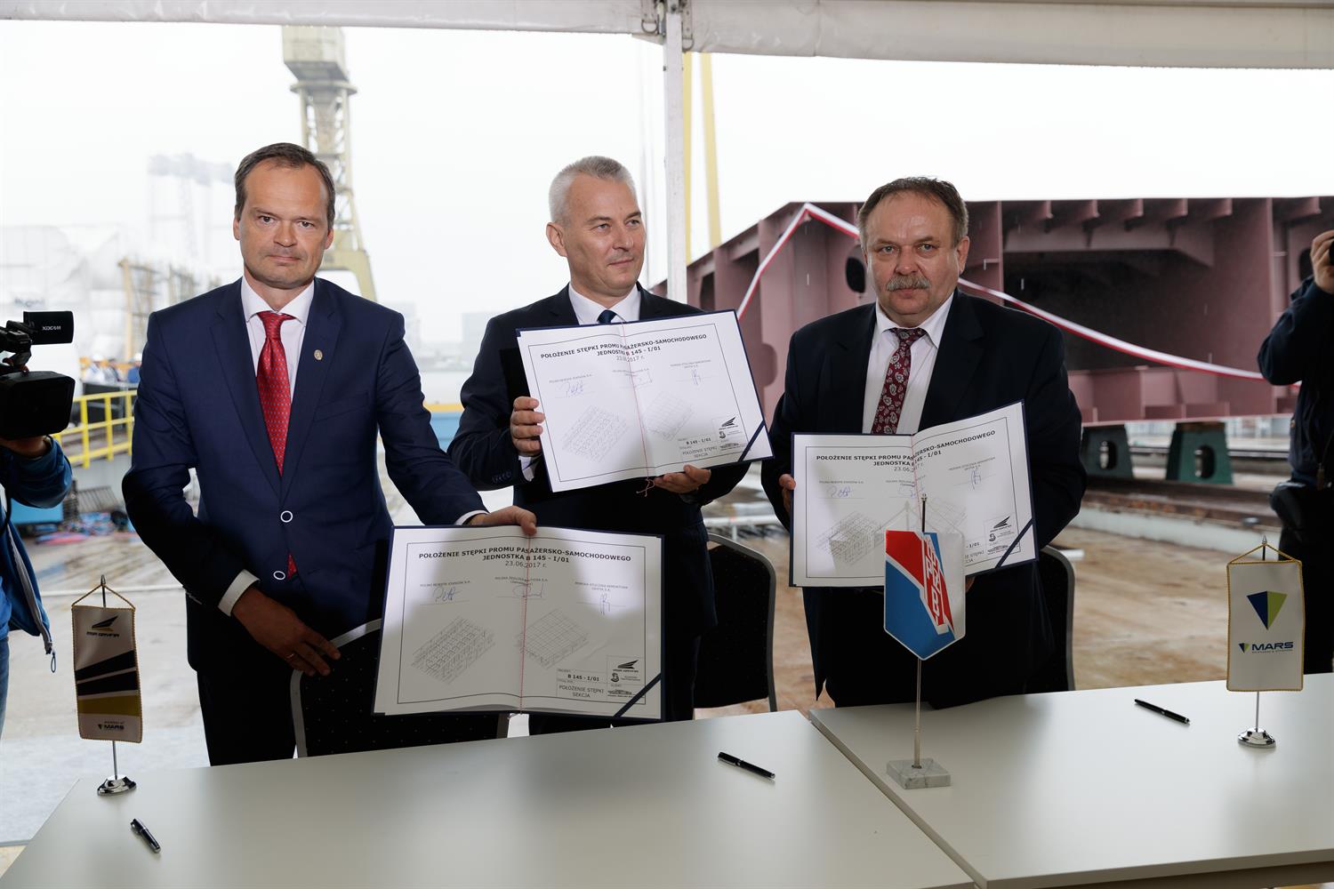 – Stępką pod pierwszy prom dla PŻB rozpoczynamy odbudowę całej polskiej floty promowej – zaznaczył minister Gróbarczyk. – Tym samym konsekwentnie realizujemy rządowy plan odbudowy przemysłu stoczniowego, który stanowić ma koło zamachowe dla całej polskiej gospodarki.