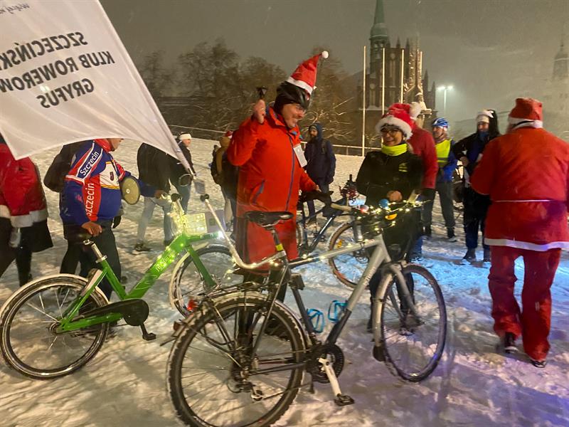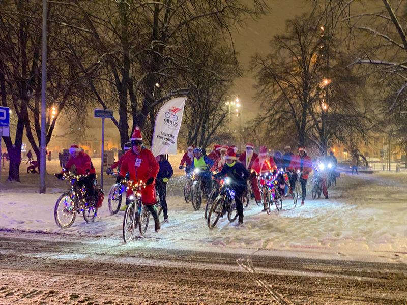 To już mikołajkowa tradycja Szczecińskiego Klubu Rowerowego Gryfus. Tym razem z placu Solidarności pojechali na Jasne Błonia i z powrotem. Wszystko po to, by wspólnie cieszyć się magiczną atmosferą świąt!