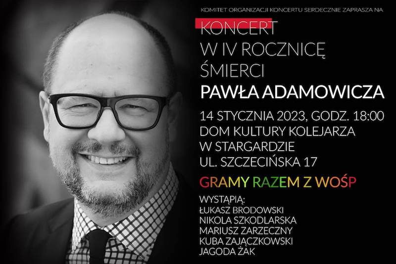 W sobotę (14 stycznia), w 4. rocznicę zamordowania Pawła Adamowicza, prezydenta Gdańska, w Stargardzie odbędą się dwa wydarzenia ku jego pamięci.