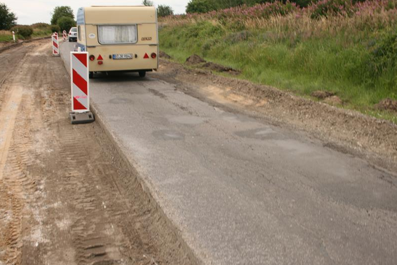 Nawierzchnie są już zerwane, ale okazuje się, że drogowcy nie potrafią nawet przygotować porządnie objazdu. Na wahadle na wysokości Pustkowa objazd na wielu odcinkach prowadzi po potężnych dziurach i wyrwach! Samochody jadą zatem powoli, stąd mała przepustowość przejazdu, ale drogowców to już nie interesuje. Oni nie widzą potężnych dziur. Kilka dni temu niemiecki kierowca wpadł w jedną z nich i wylądował na Stacji Obsługi Samochodów w Śliwinie. Samochód miał urwane drążki skrętne. Inny z kierowców chciał ominąć wyrwę na trasie objazdowej, za gwałtownie poruszył kierownicą i wjechał dwoma kołami na rozkopaną część jezdni. Auto zawisło na skraju drogi. W wielu miejscach, gdzie są potężne wykopy, nie ma pachołków! Czy naprawdę drogowcy tego nie widzą?