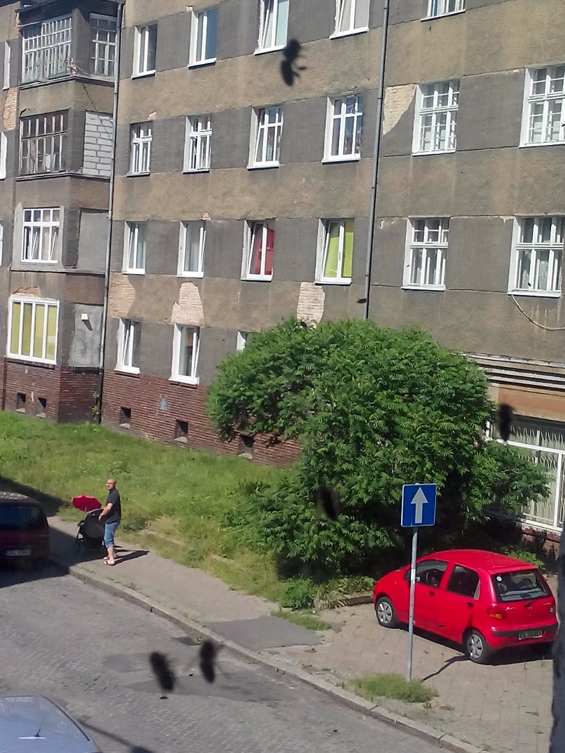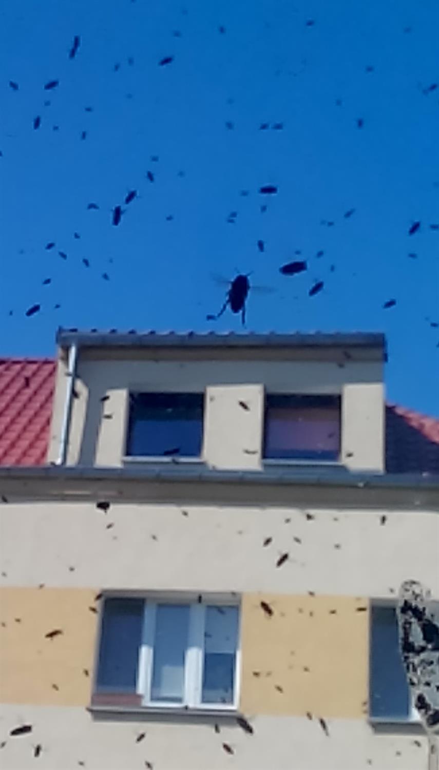- Szykowałam się do pracy, kiedy zauważyłam, że mój kot skacze przy oknie jak wściekły - opowiada pani Monika, nasza Czytelniczka. - Wyjrzałam i się przeraziłam: zobaczyłam tysiące owadów obijających się o okno. Myślałam, że ta chmara po prostu przelatuje. Ale czekałam 40 minut, a one nadal tam były. Bałam się wyjść, nie mając pewności, czy nie latają też przed klatką schodową. Zadzwoniłam na 112, bo szczerze mówiąc, nie miałam pomysłu, gdzie to zgłosić. Policjant dopytywał, czy to pszczoły, czy osy, ale nie byłam w stanie tego stwierdzić. Podał mi numer do straży miejskiej. Tam usłyszałam, że tym powinien się zająć zarządca kamienicy. Obiecano, że sprawa zostanie mu zgłoszona. Po chwili zadzwonił do mnie zarządca, wskazałam, że gniazdo jest pomiędzy drugim a trzecim pietrem. Okno na drugim piętrze mojego sąsiada było całe czarne od tych owadów.