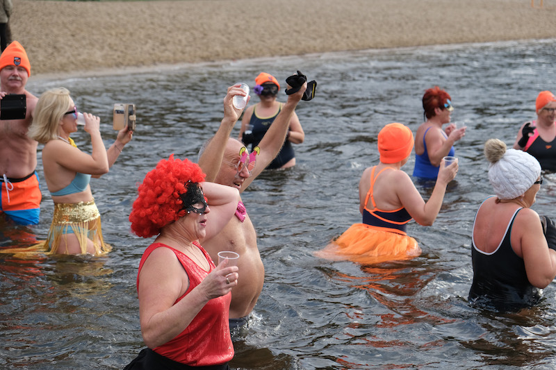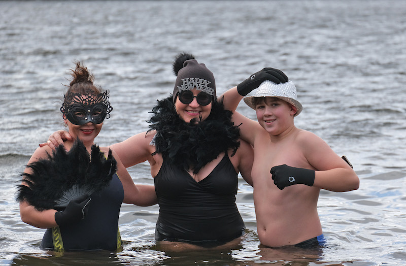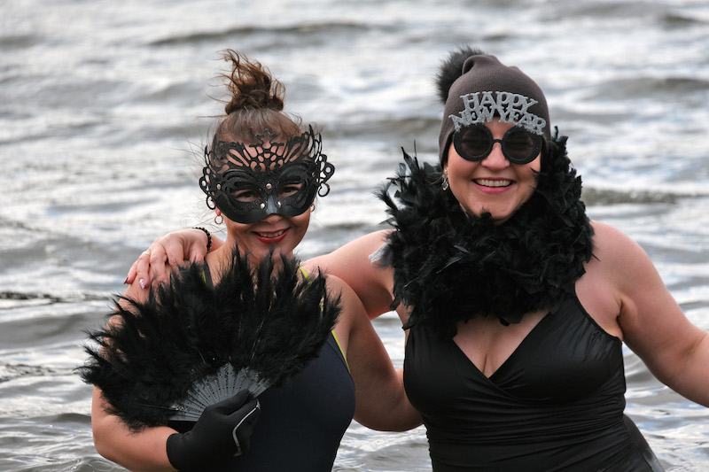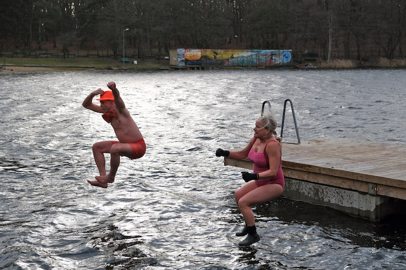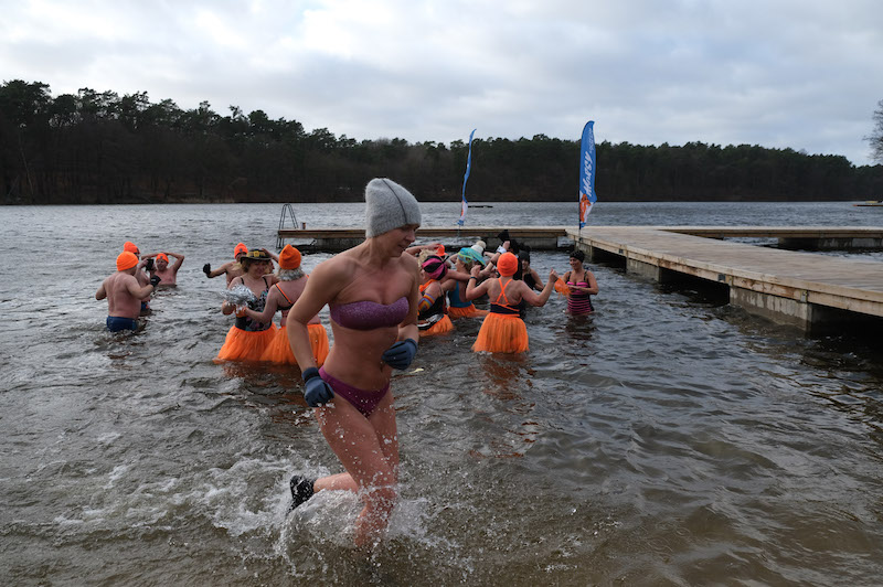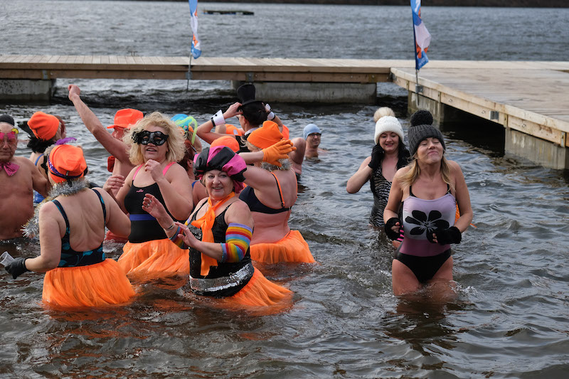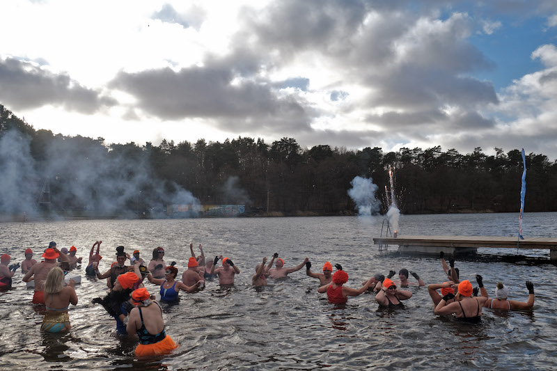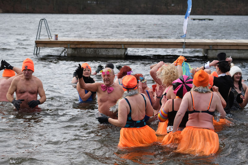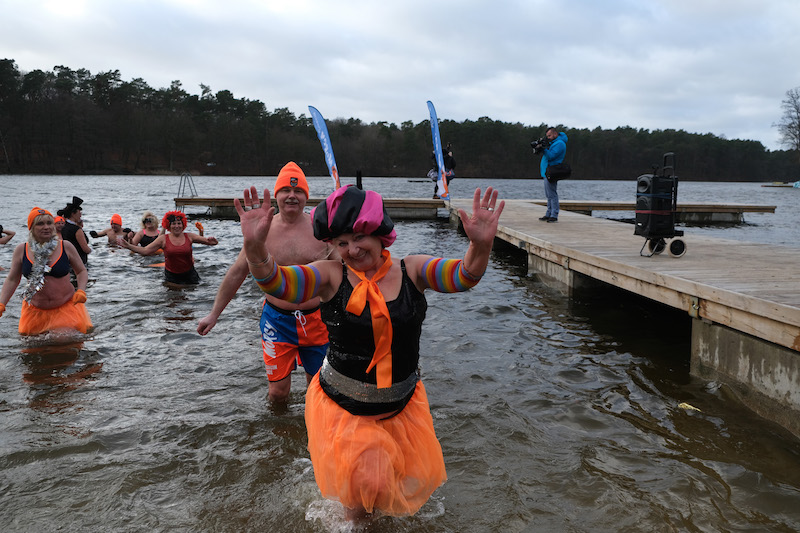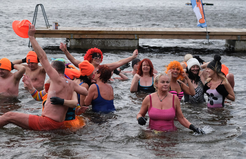W iście szampańskim nastroju morsy ze Szczecina i Polic przywitały Nowy Rok zimną kąpielą w jeziorze Głębokim. Silny i porywisty wiatr nie przeszkodził im w świętowaniu w swoim stylu. Członkowie Klubu "Morsy" imienia Zbyszka Ulatowskiego zadbali o odpowiednią oprawę: maski sylwestrowe, peruki i uśmiechy na twarzach. Frekwencja i humory dopisały, co widać na zdjęciu. Przypomnijmy, że w połowie grudnia amatorzy odnieśli częściowy sukces, wchodząc w strojach kąpielowych na Śnieżkę - najwyższy szczyt Karkonoszy oraz Sudetów.