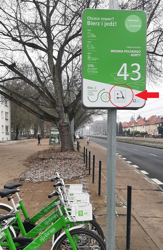 Stacje Bike_S zostały już odpowiednio oznakowane. Można na nich zobaczyć piktogram z hulajnogą. Operator roweru miejskiego ma jednak jeden apel do użytkowników hulajnóg.