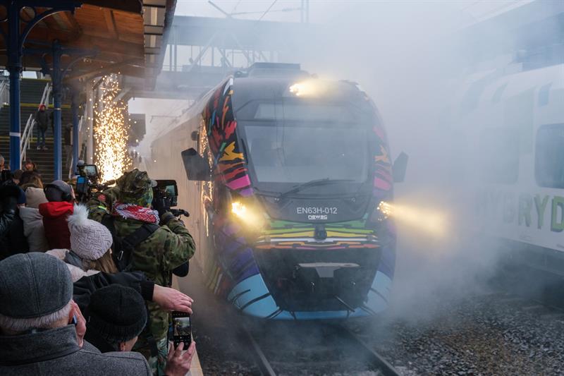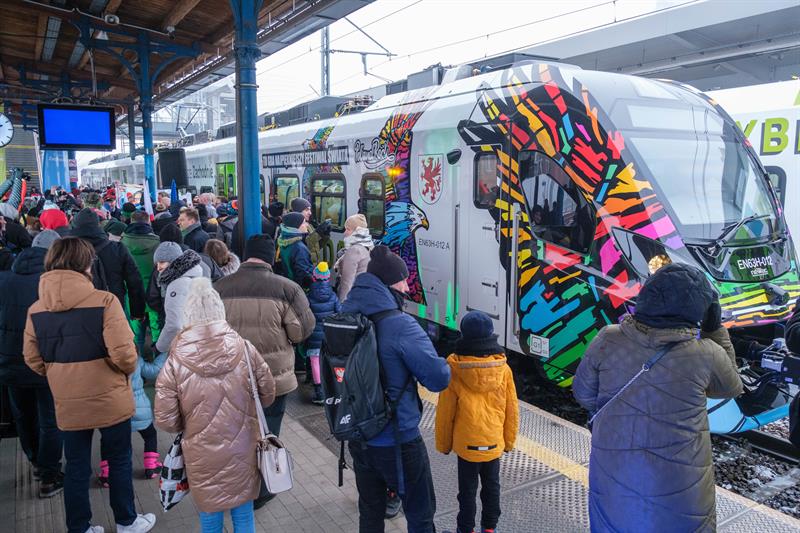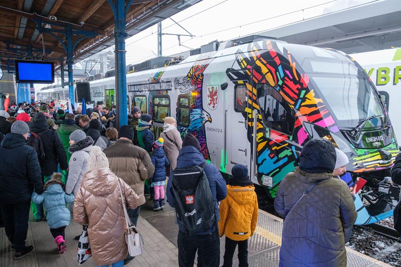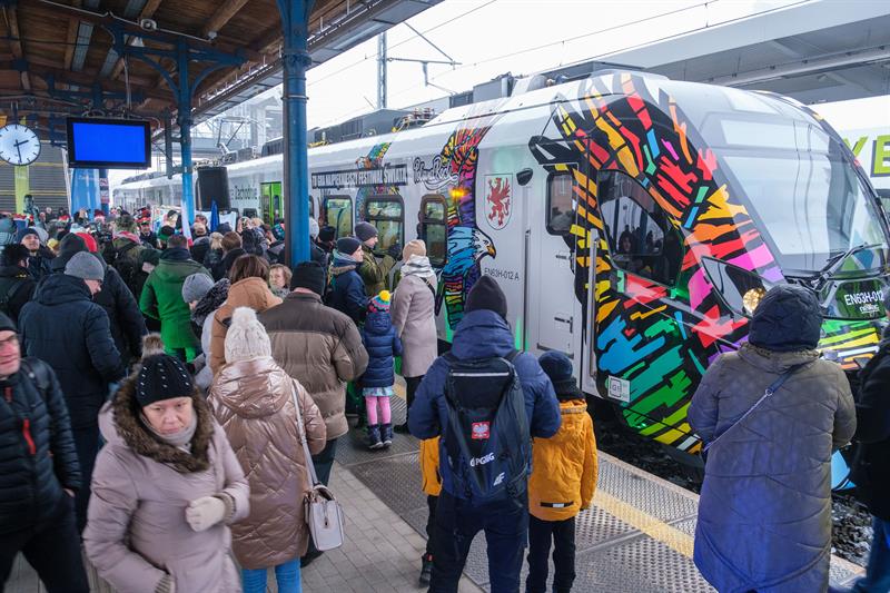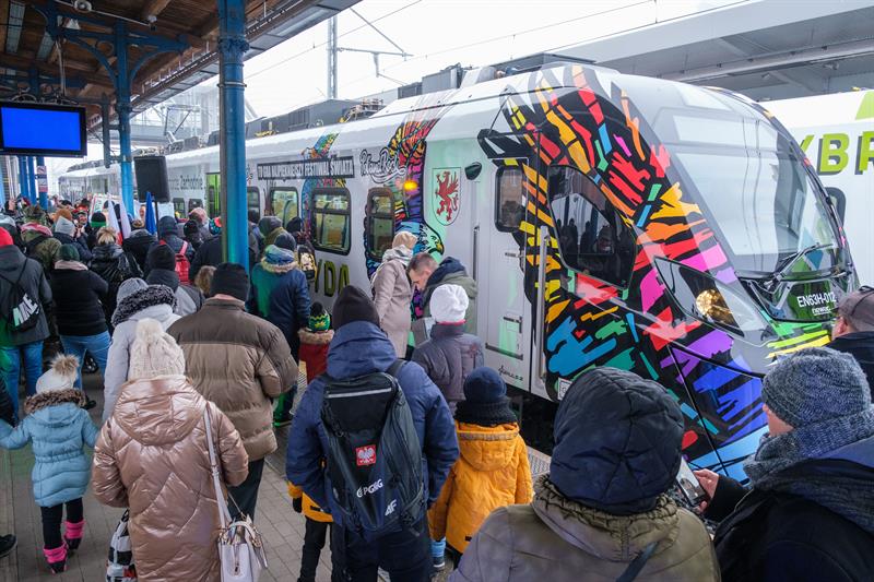 Nietypowe malowanie pociągów hybrydowych kupowanych przez samorząd województwa to już tradycja. W sobotę na szczecińskim dworcu - tuż przed pierwszy, kursem do Koszalina, zaprezentowano kolejny. Malowanie zaprojektował sam Jurek Owsiak, który był jednym z gości prezentacji.